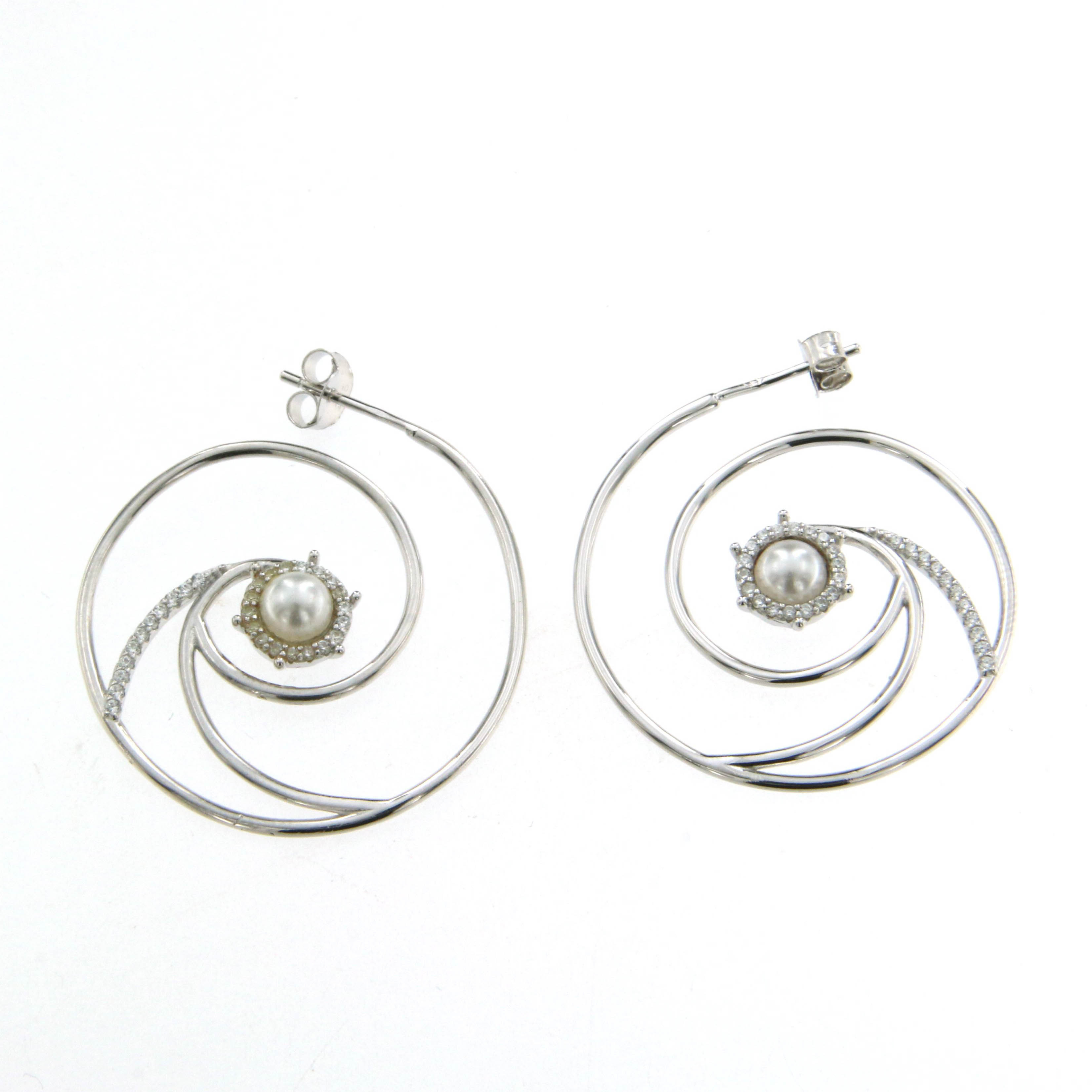Обеци от “Jacklin hugasian” в сребро с циркон и култивирана бяла перла.