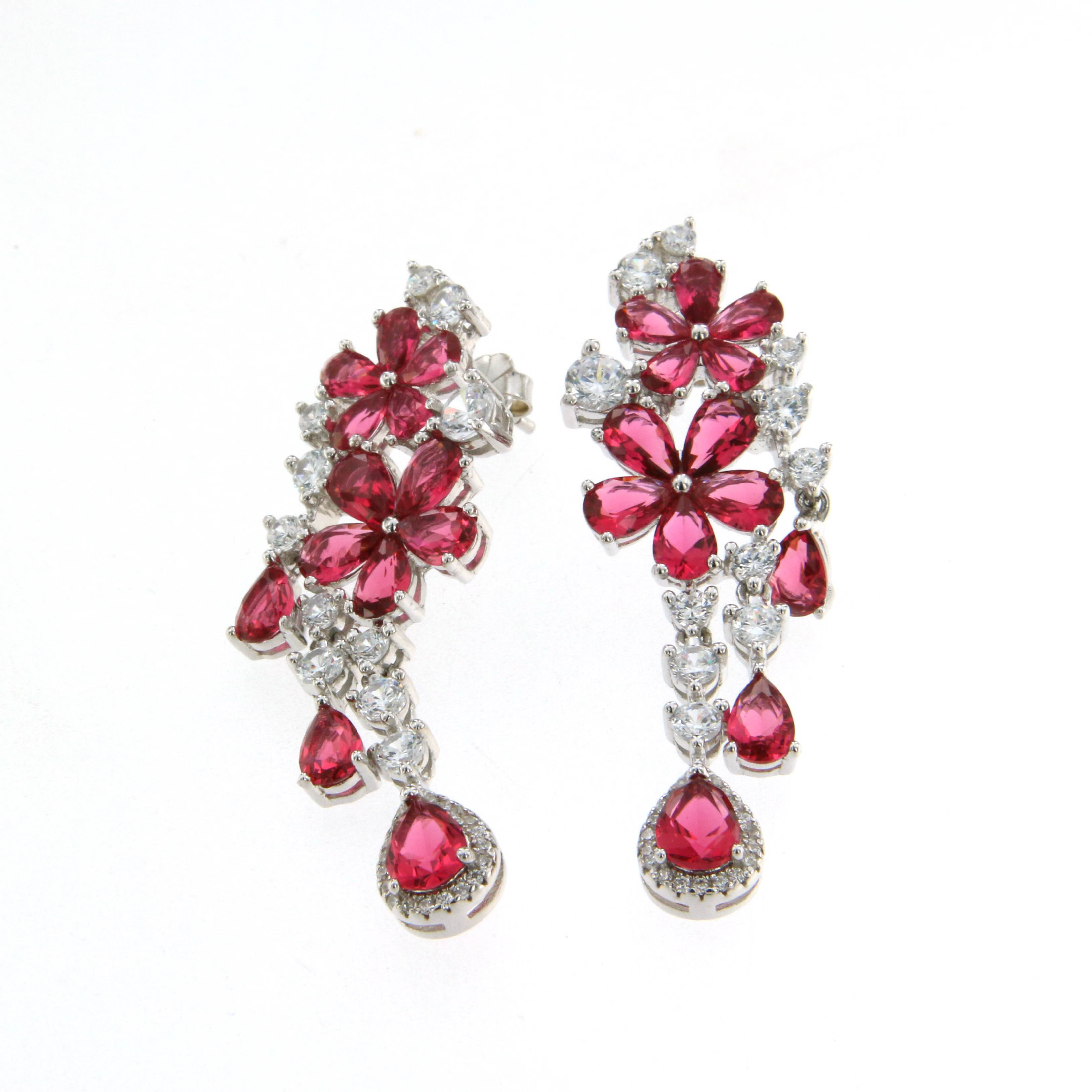 Обеци от “Jacklin hugasian” в сребро с циркони и розов турмалин. Дължина обеци 4.9 см., широчина 1.5 см.