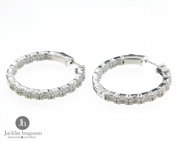 Обеци от "Jacklin hugasian" в сребро с цирконий.Диаметър обеци 3.0 см.,широчина 3.0 см.