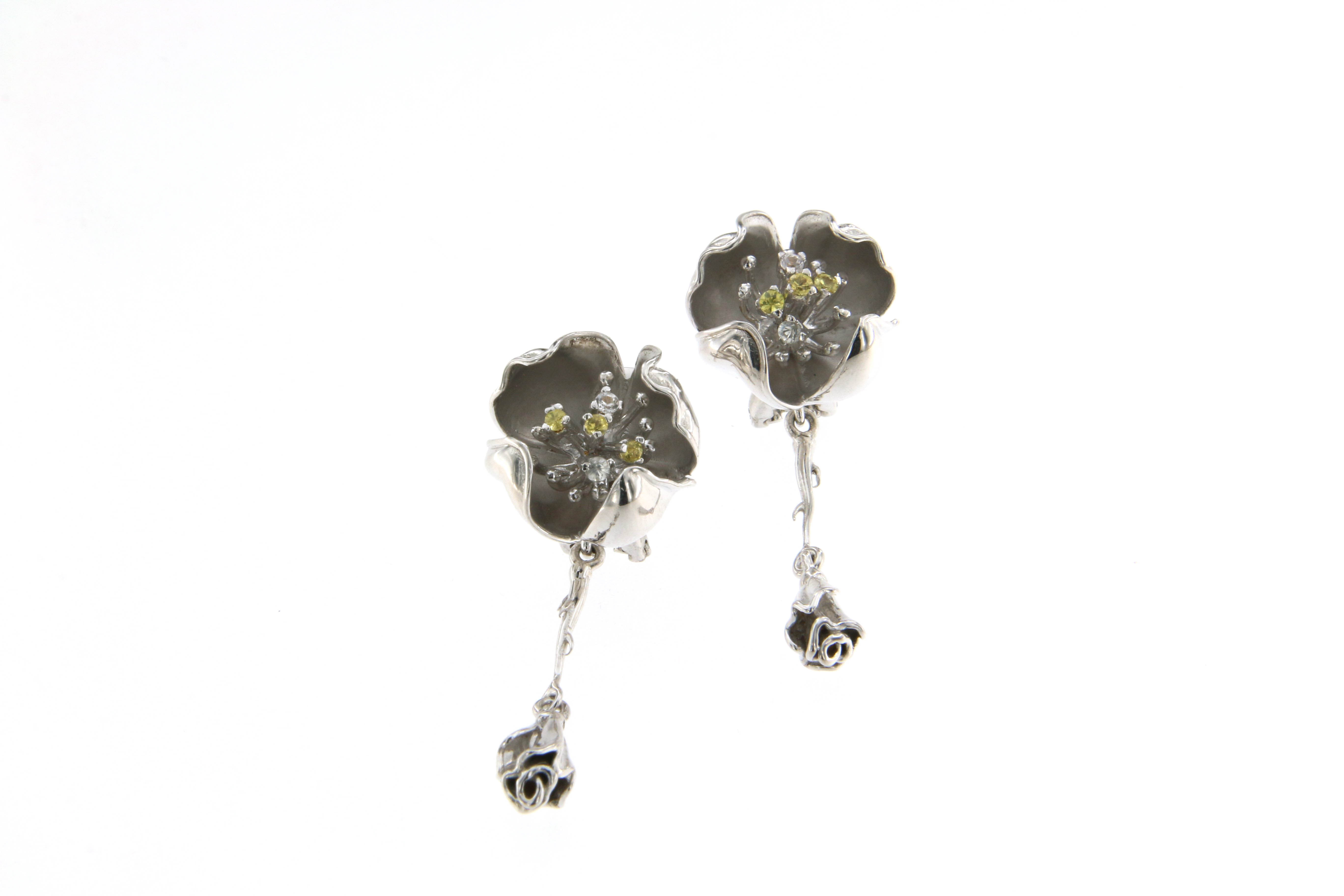 Обеци от "Jacklin hugasian" в сребро с филигранна обрабока, цитрин и циркони. Колекция "Roberto Bravo"