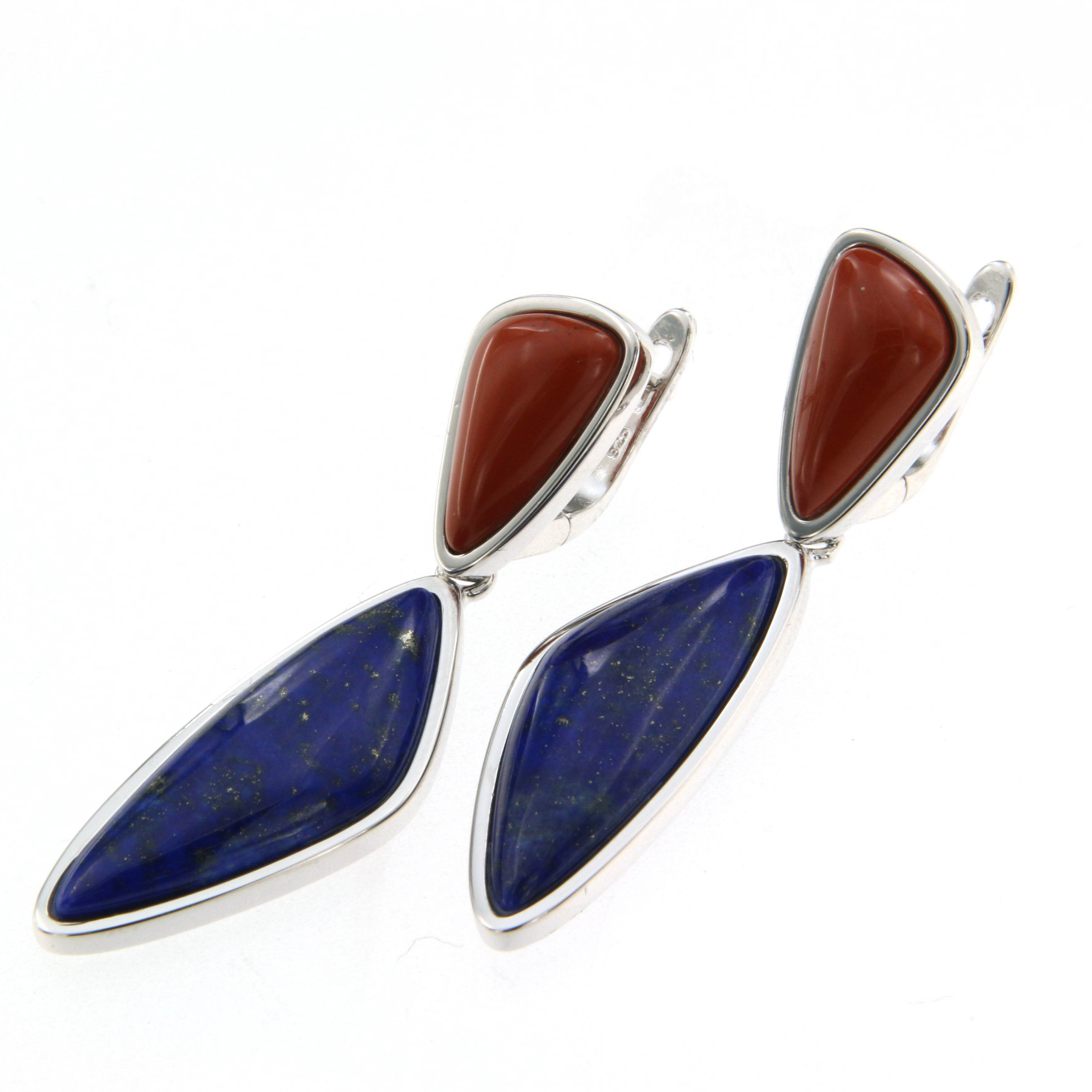 Обеци от "Jacklin hugasian" в сребро с камъни "карнеол" и "лапис лазули"