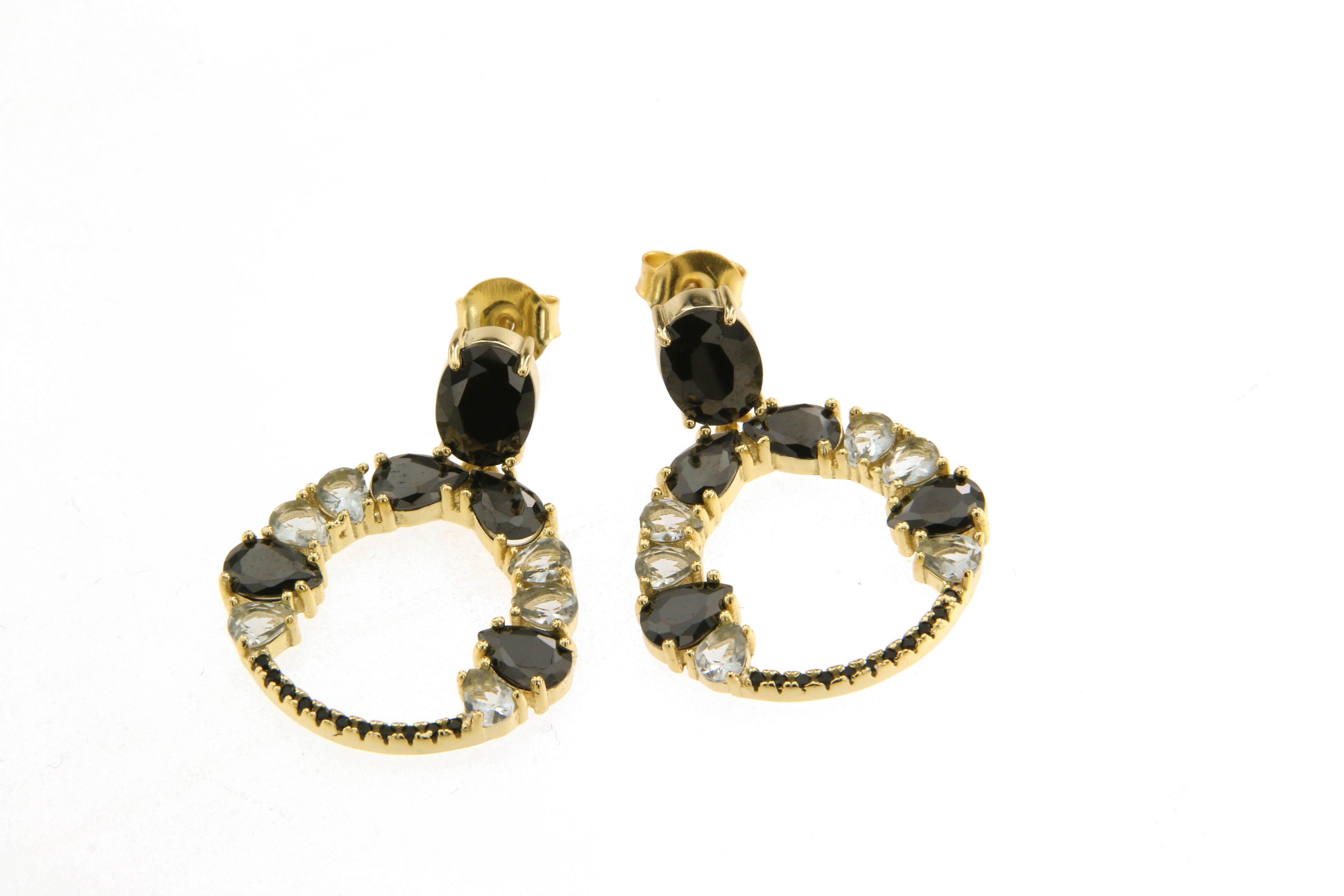 Обеци от "Jacklin hugasian" в сребро с позлата , оникс и цирконии.