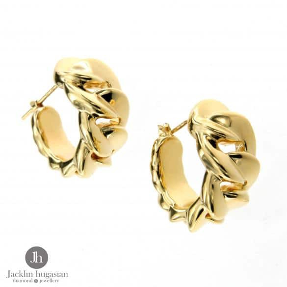 Обеци от "Jacklin hugasian" в жълто злато гланц, олекотени.