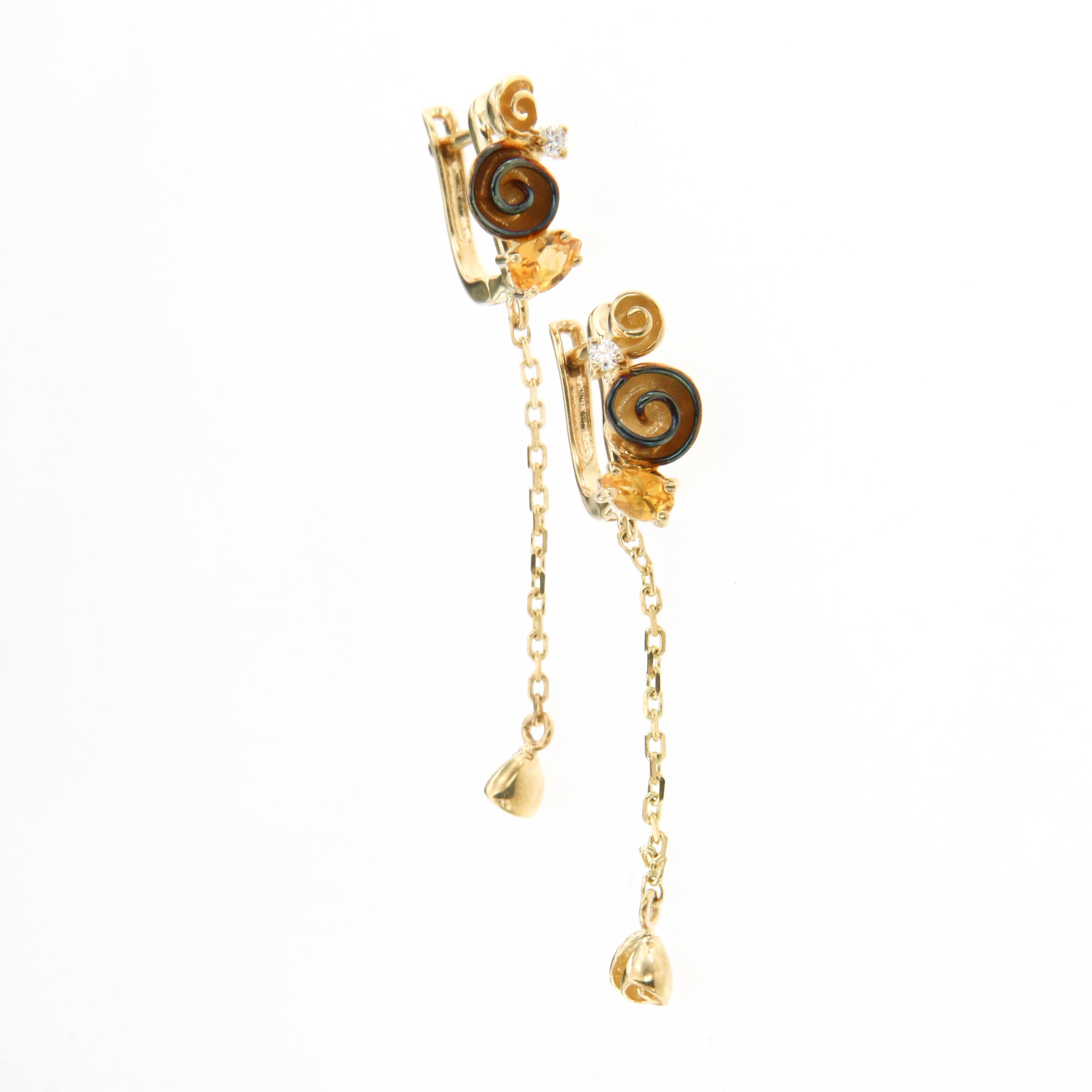 Обеци от “Jacklin hugasian” жълто злато с диамант и цитрин.