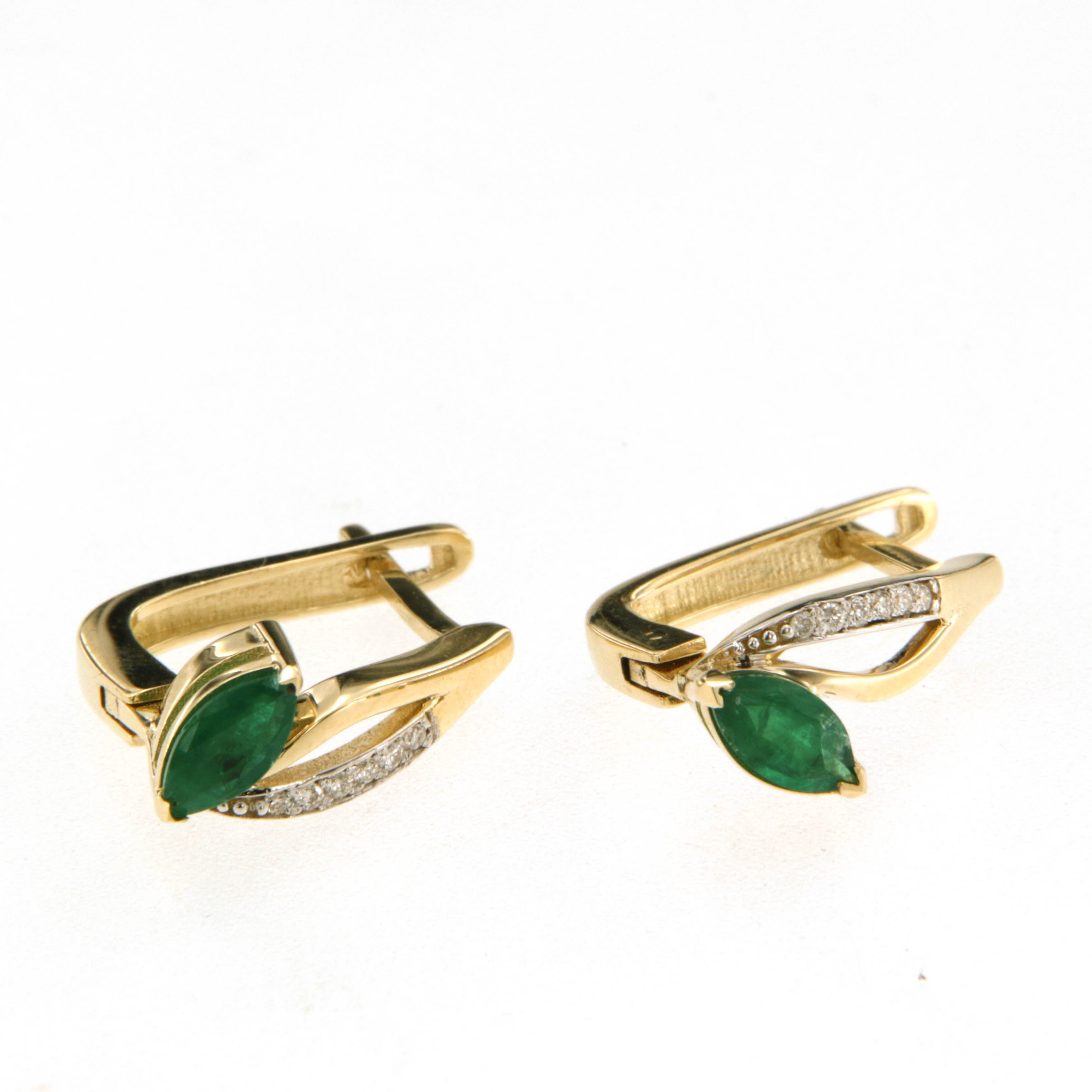 Обеци от "Jacklin hugasian" жълто злато с изумруд и диаманти. Дължина 1.4 см., широчина 1.00 см.