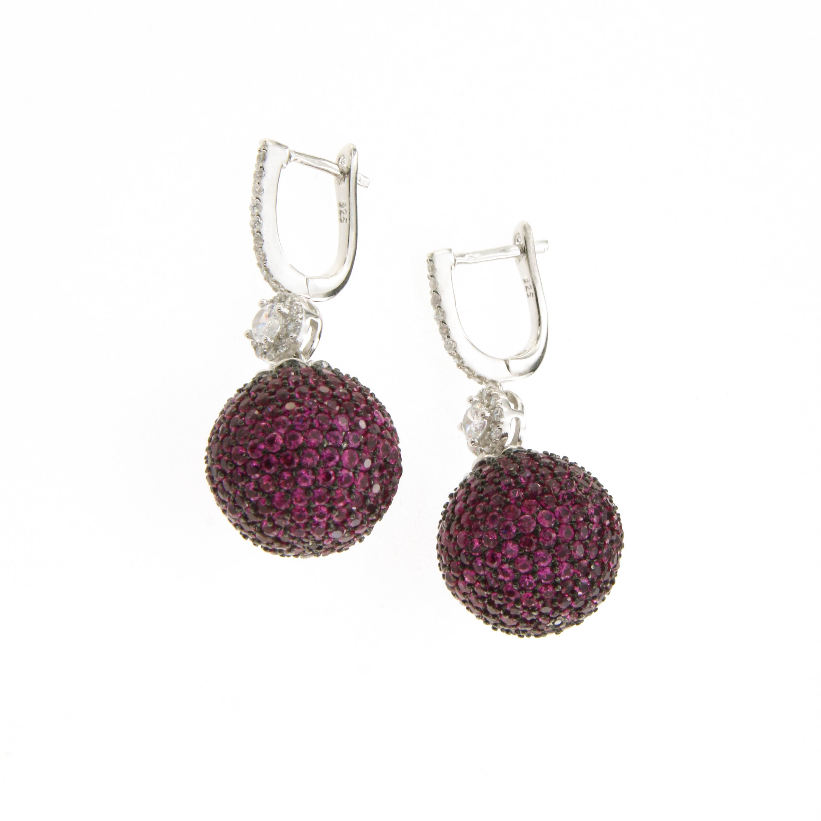Обеци от “Jacklin hugasian” в сребро с циркони и рубин. Дължина 3,5 см. , широчина 1.7 см.