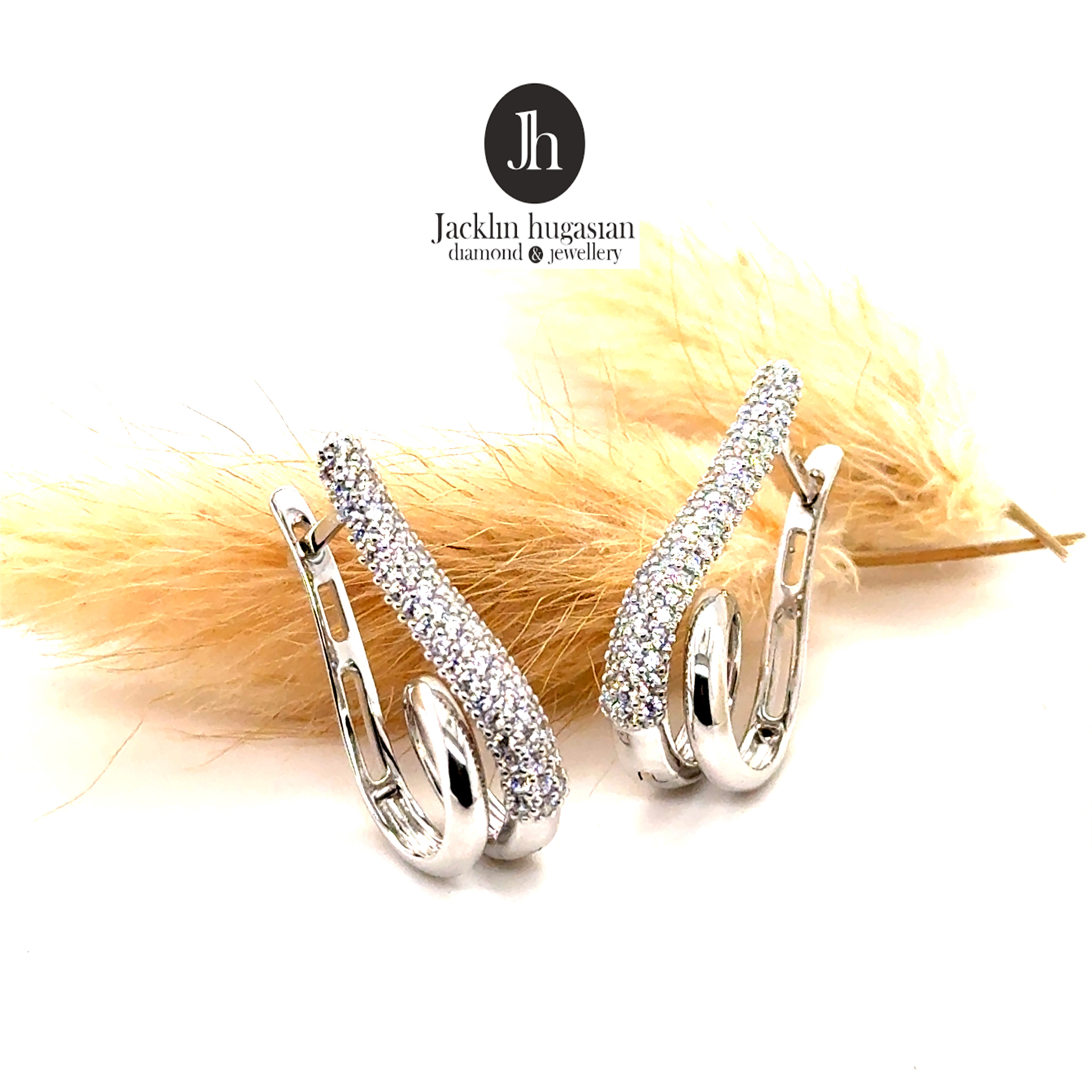 Обеци от “Jacklin hugasian” в бяло злато с циркони