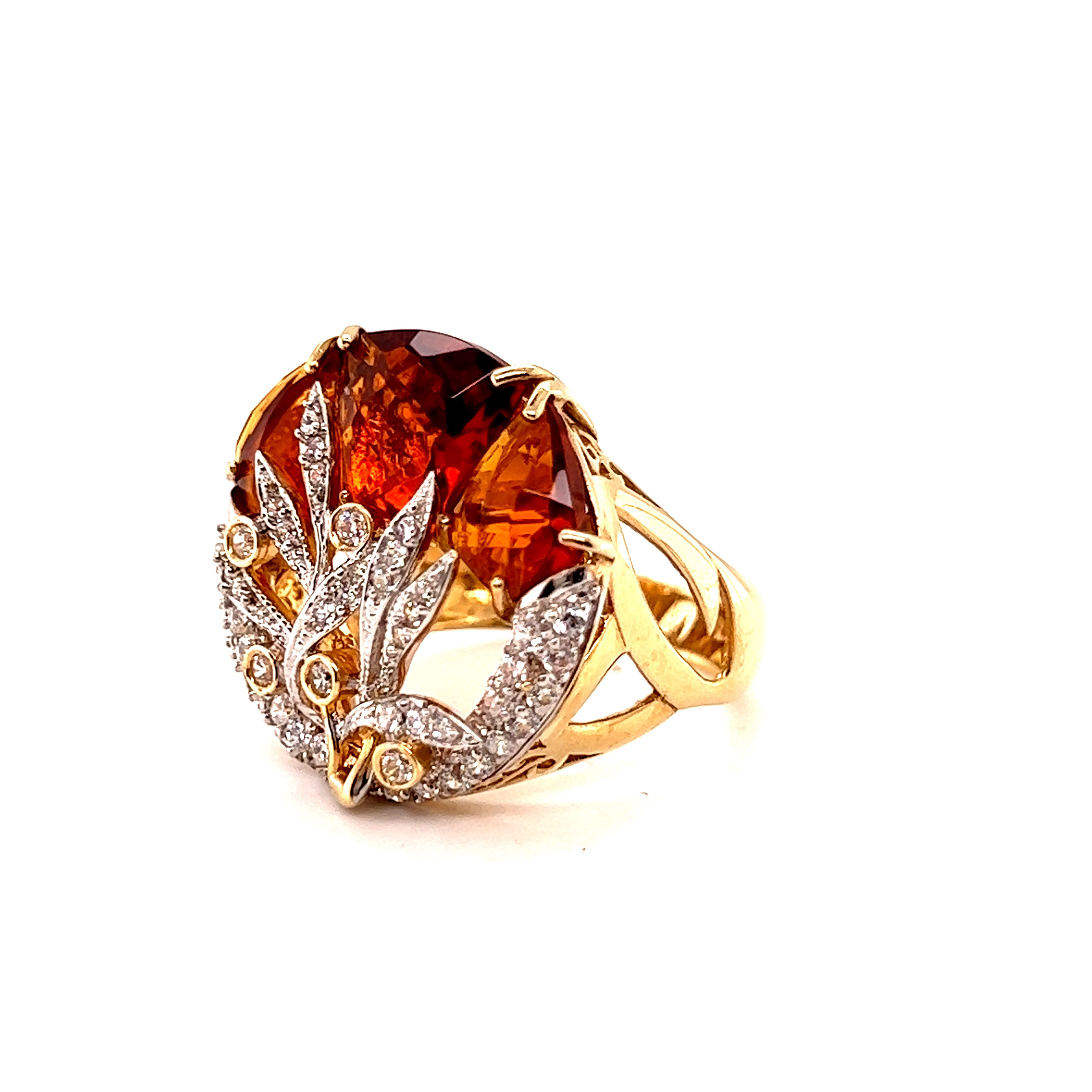 Пръстен от “Jacklin hugasian” в жълто и бяло злато с карнеол и цирконии.
