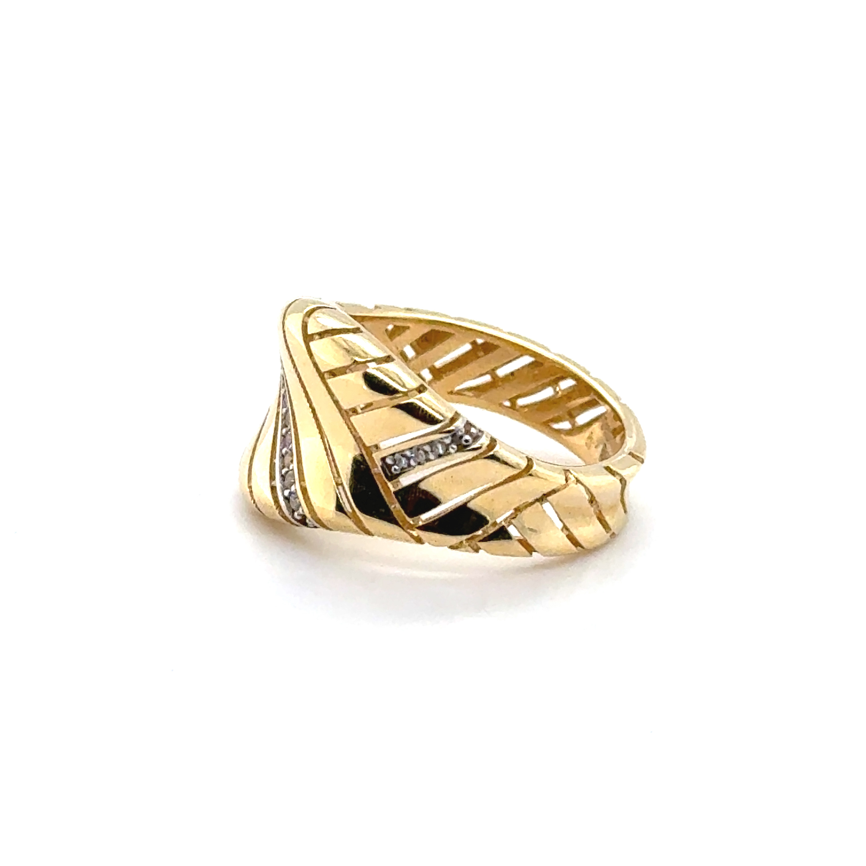 Пръстен от “Jacklin hugasian” в жълто злато гланц с циркони.