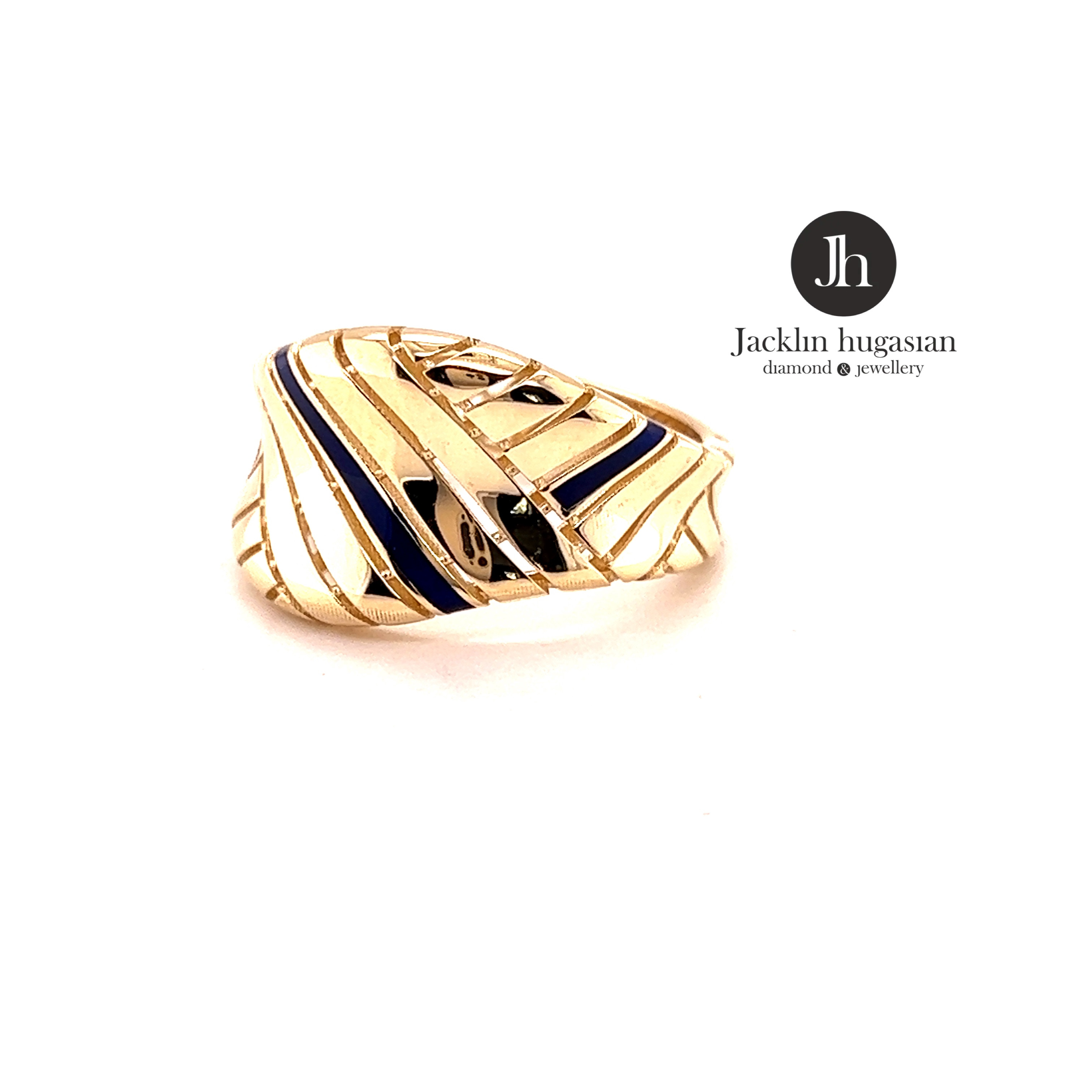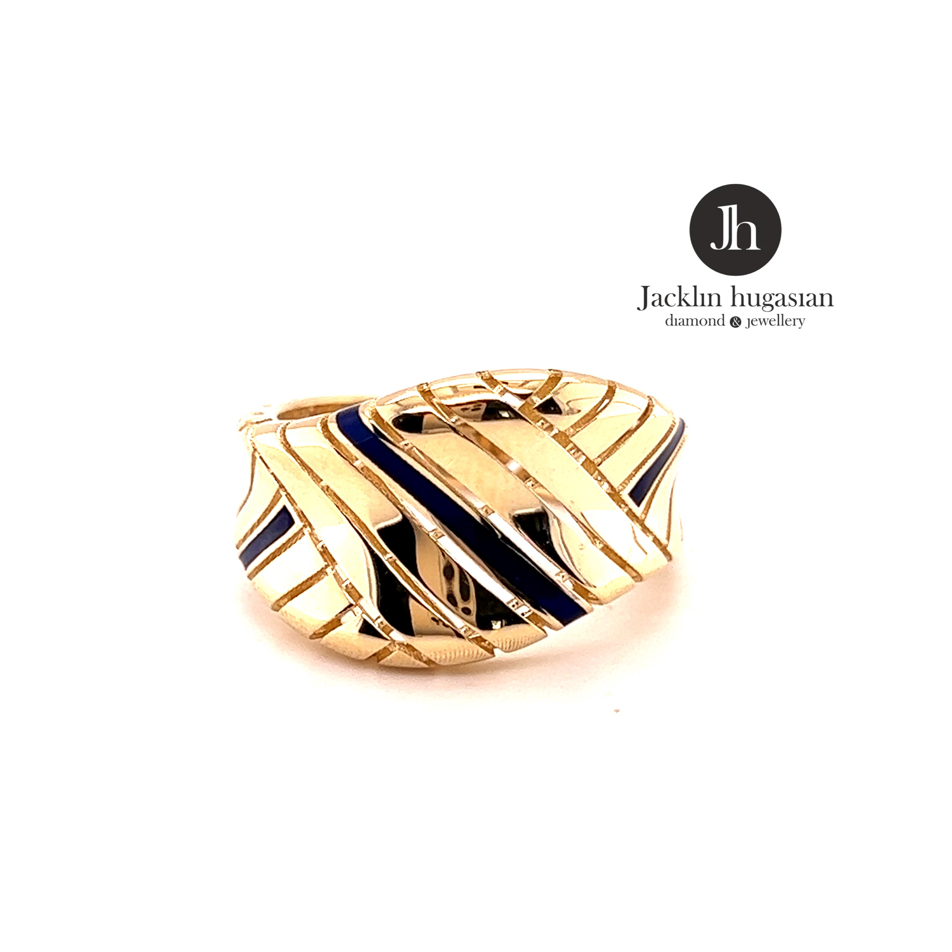 Пръстен от “Jacklin hugasian” в жълто злато гланц с цветен емайл.