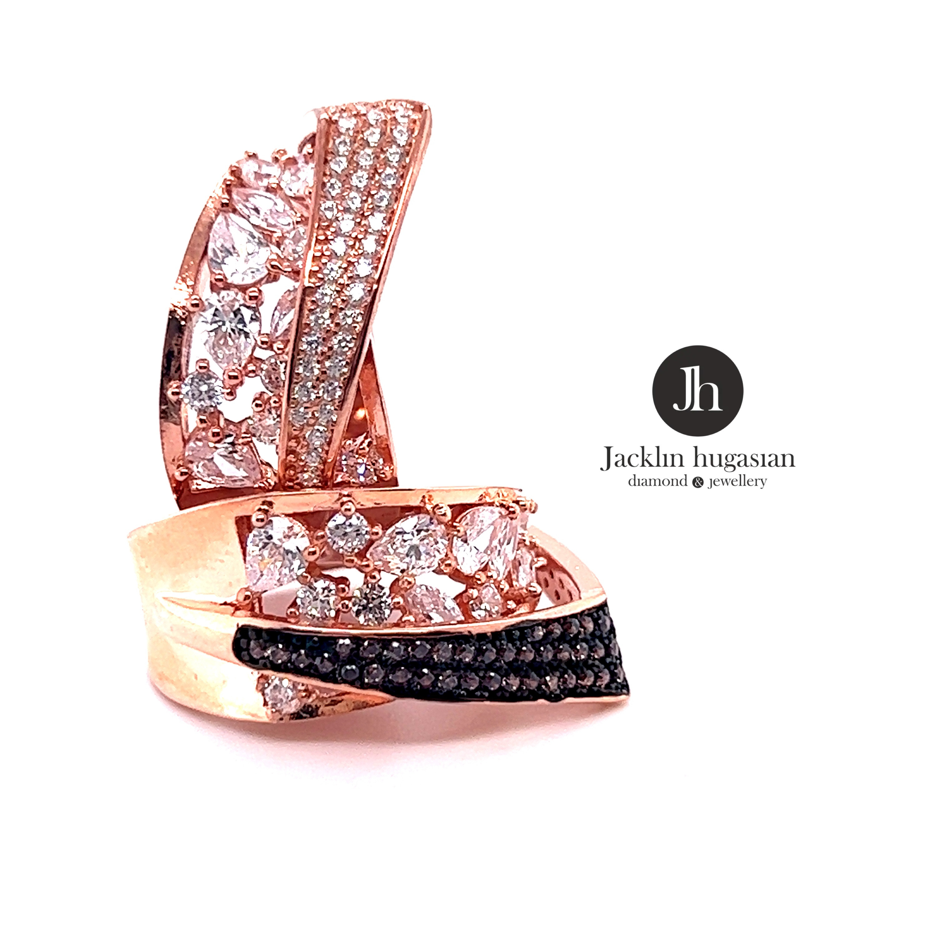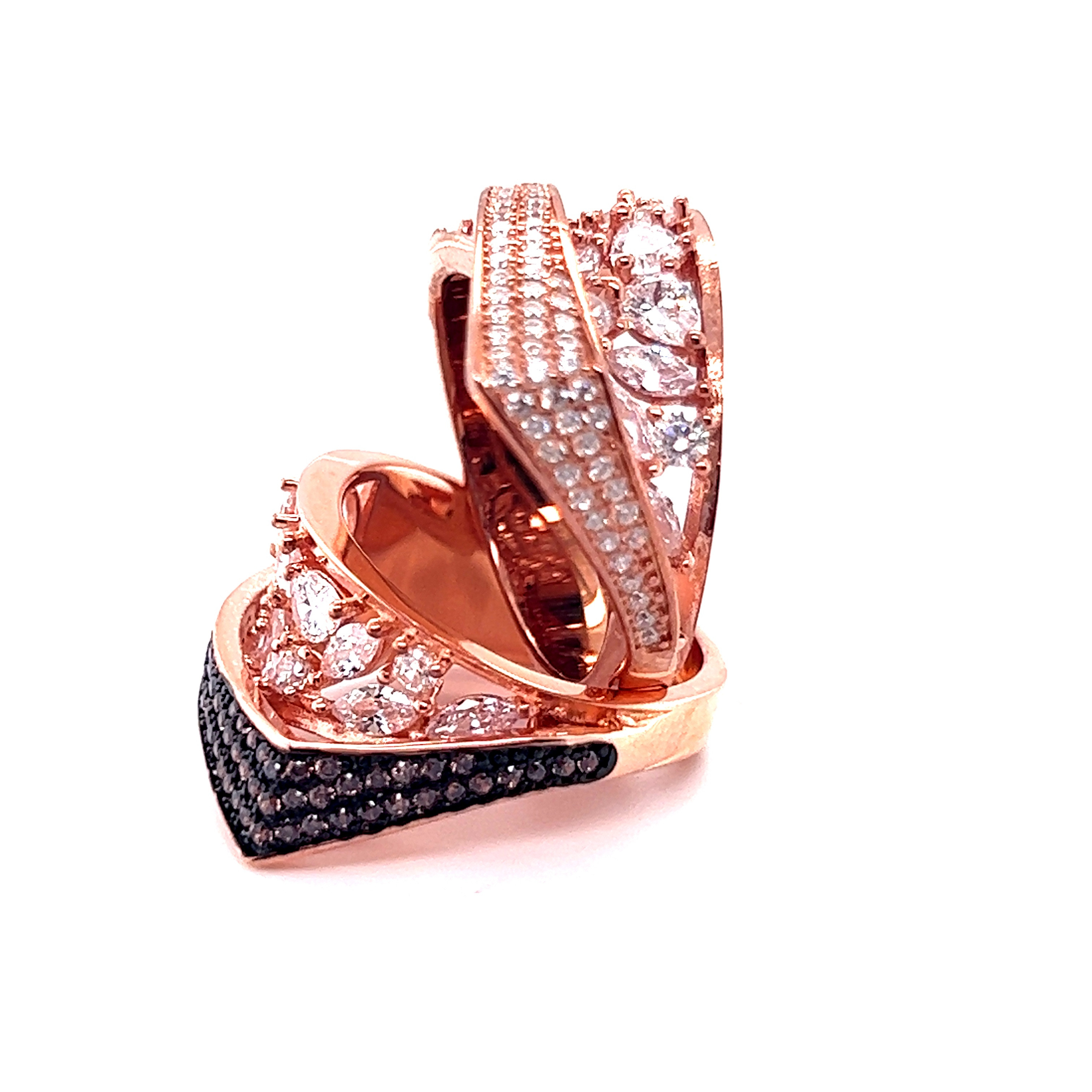 Пръстен от "Jacklin hugasian" в розово сребро с циркони и опушен топаз