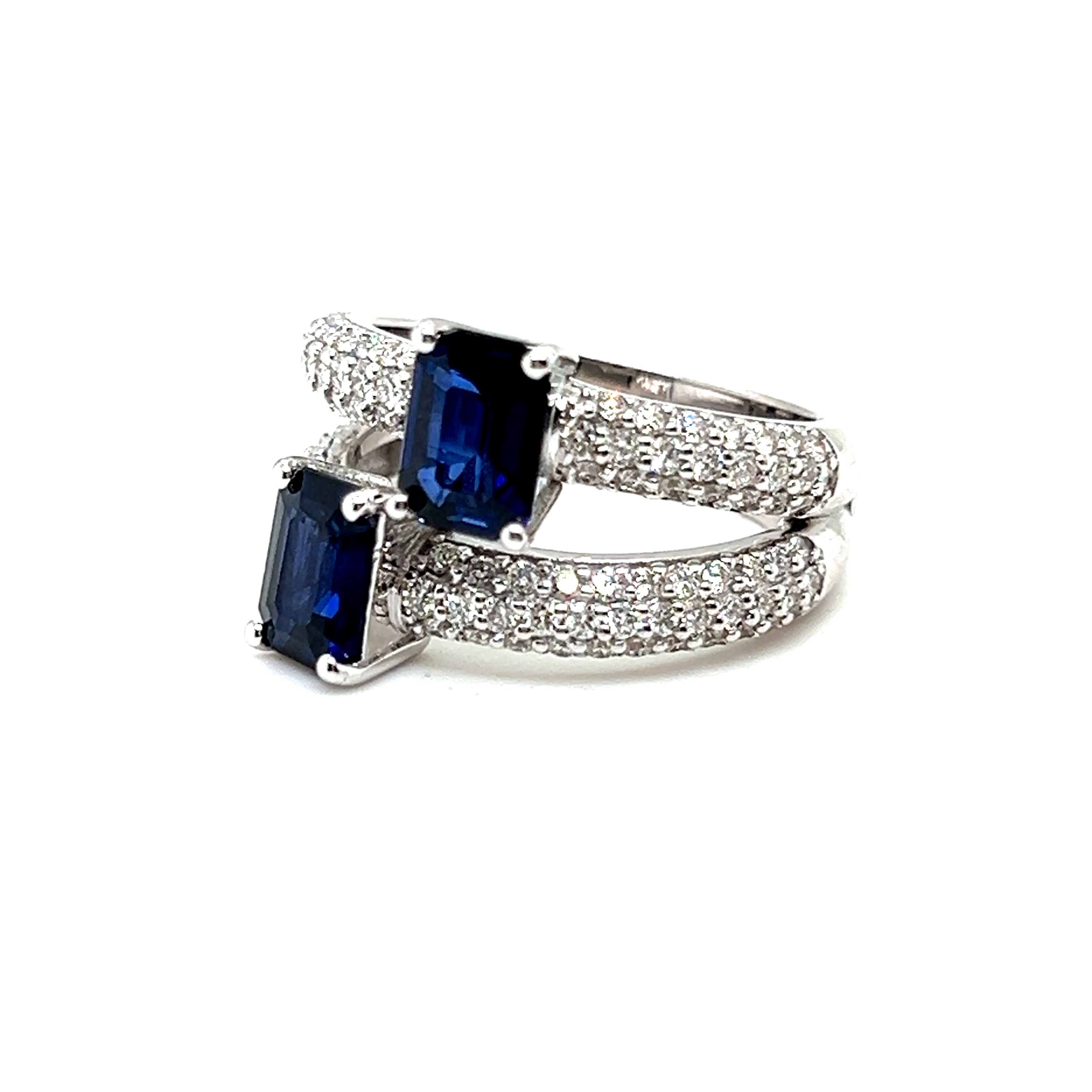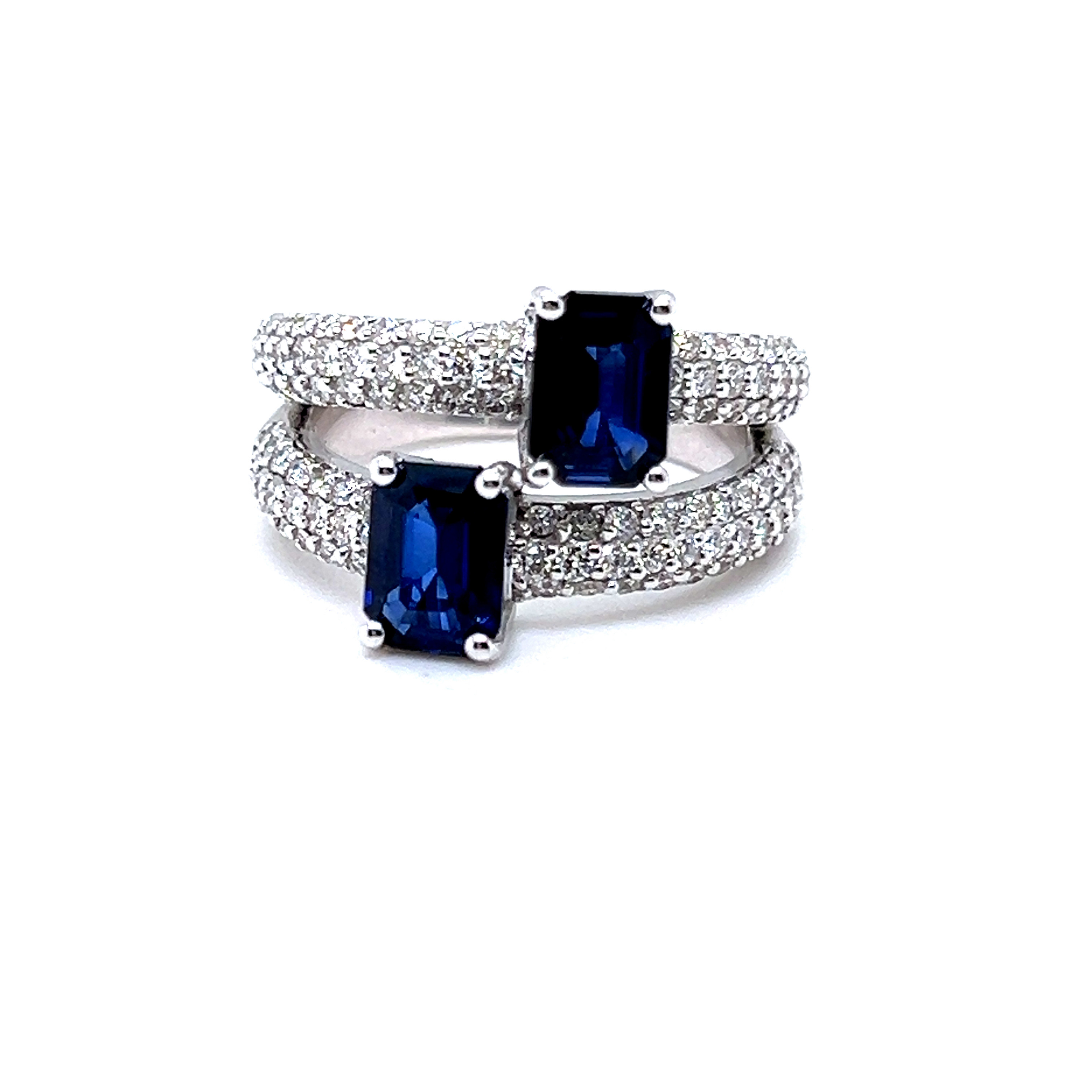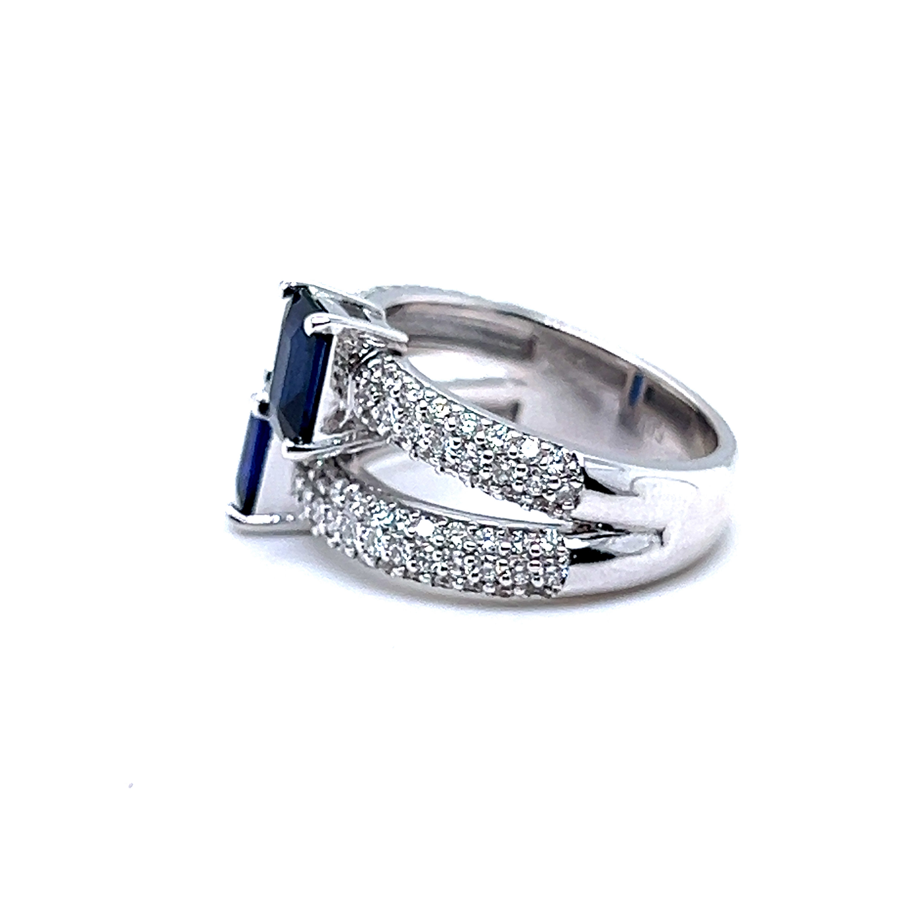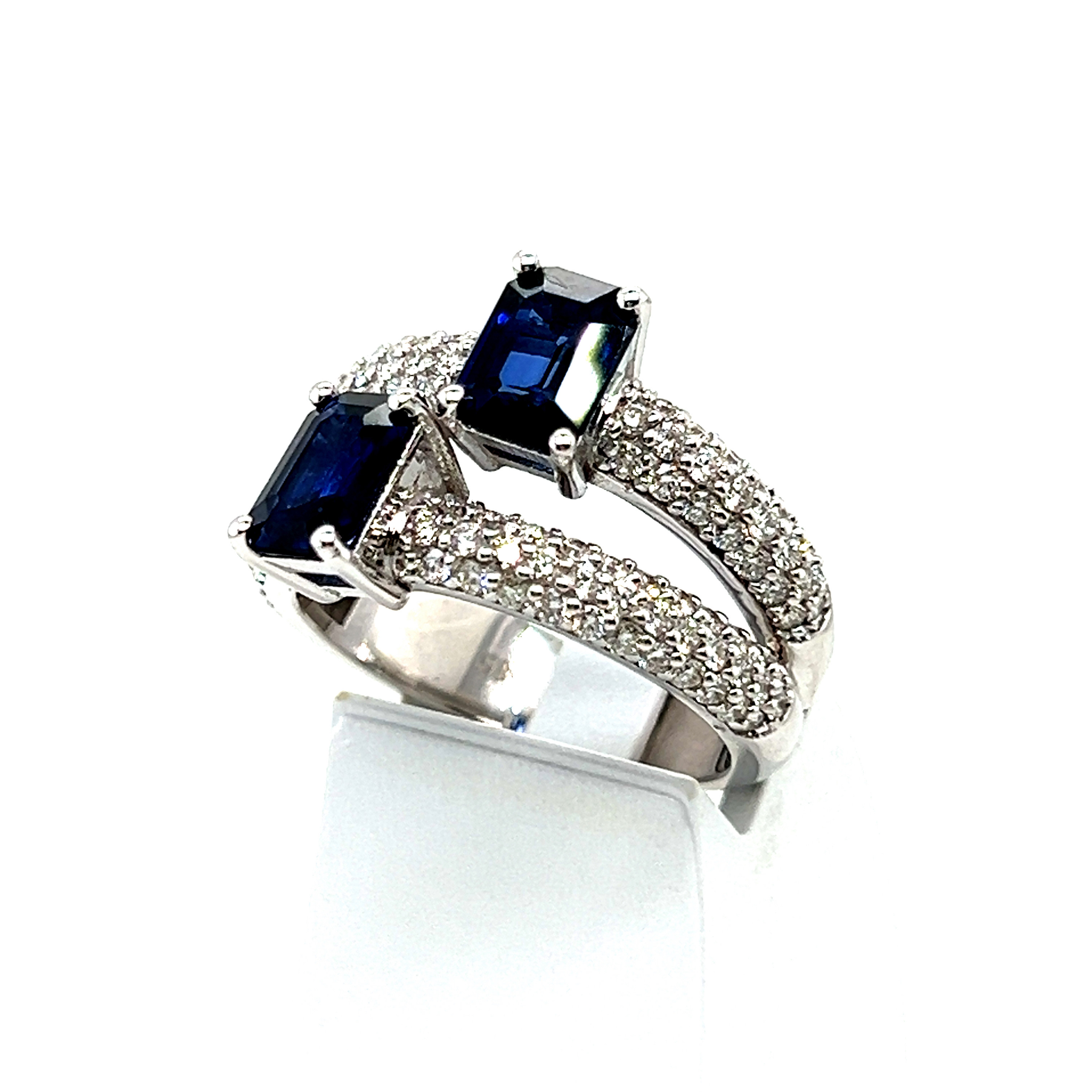 Пръстен от "Jacklin hugasian" в бяло злато със сапфир и диаманти.
