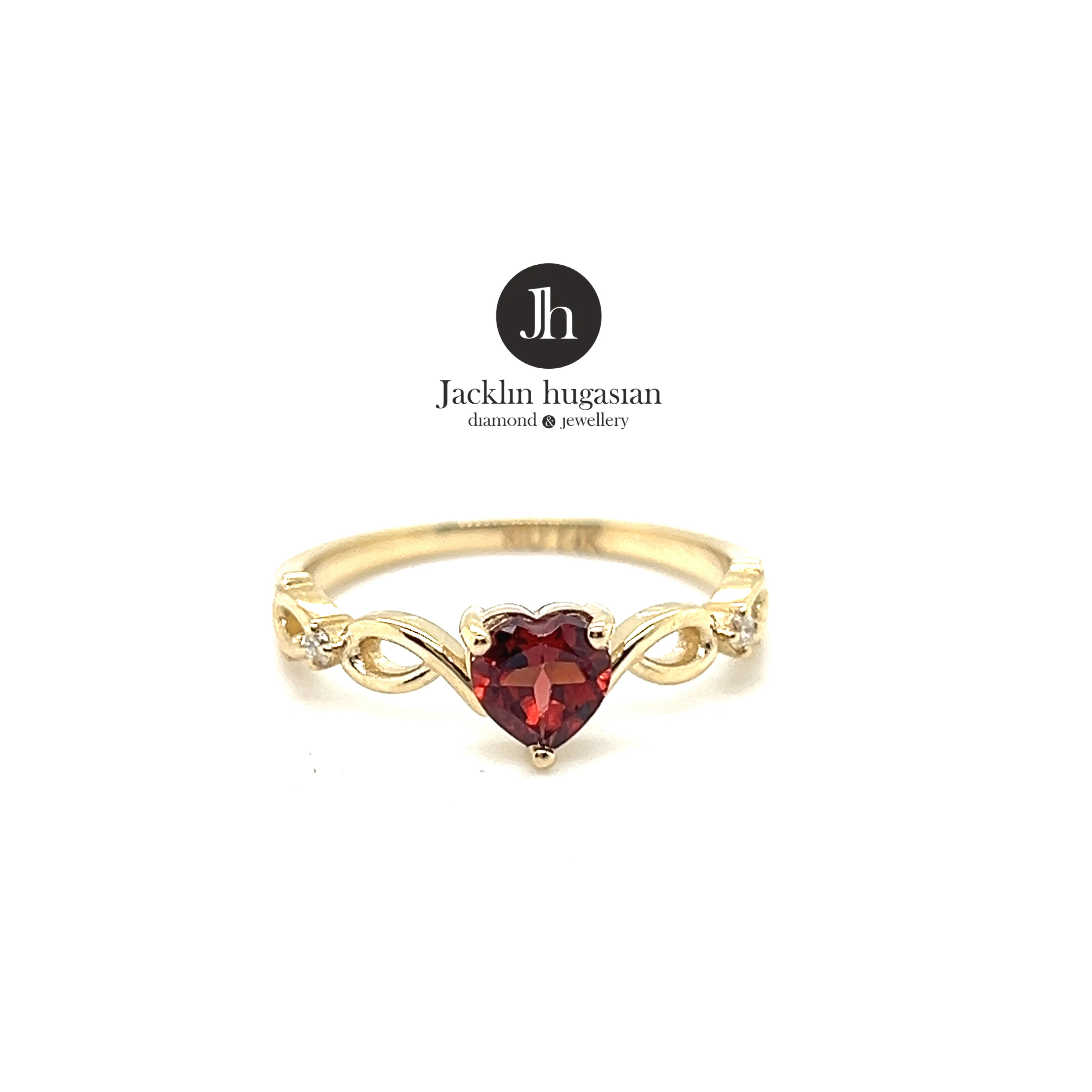 Пръстен от "Jacklin hugasian" в жълто злато с гранат и диаманти.