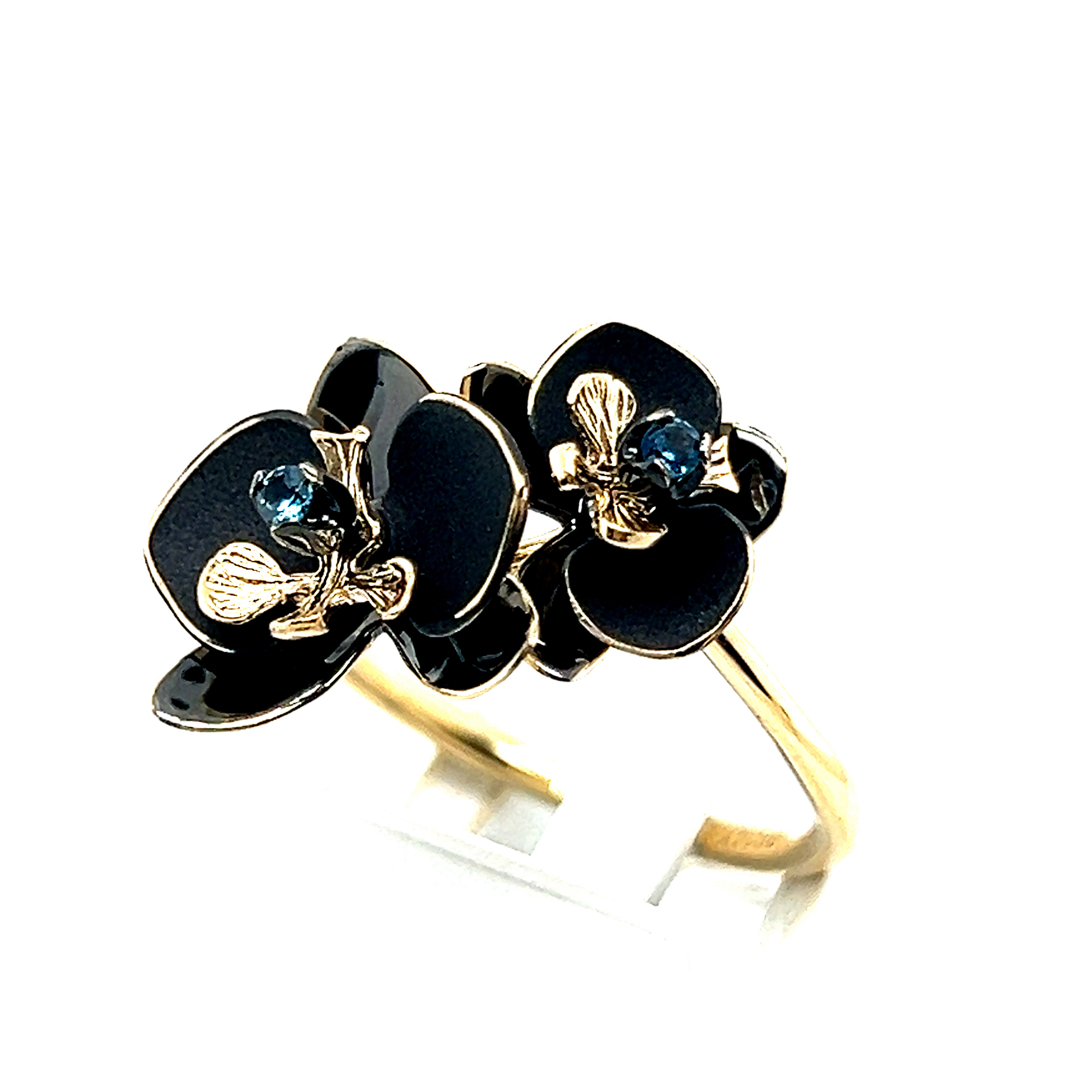 Пръстен от “Jacklin hugasian” в жълто и черно злато със сапфир.