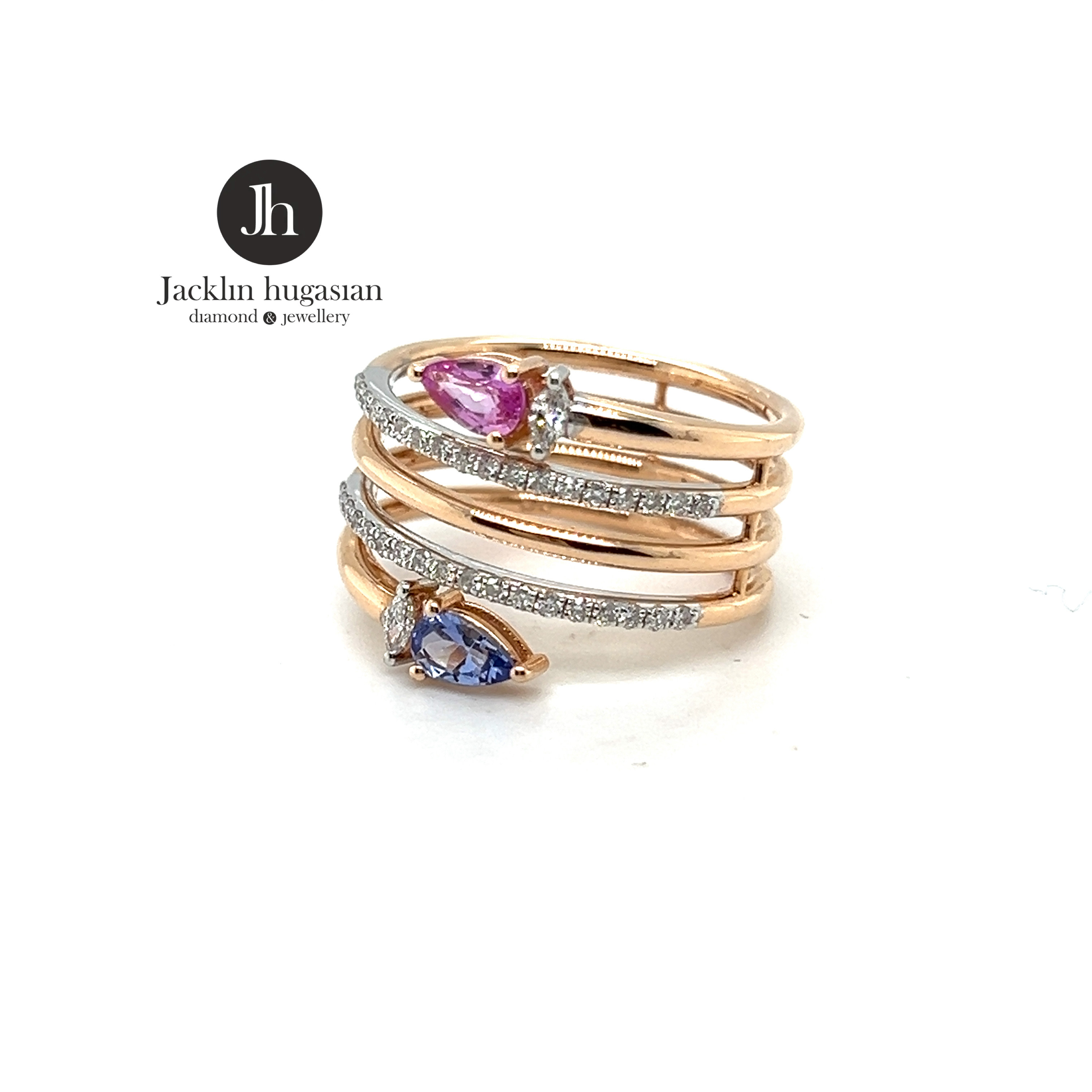 Пръстен от “Jacklin hugasian” в жълто злато с турмалин и диаманти