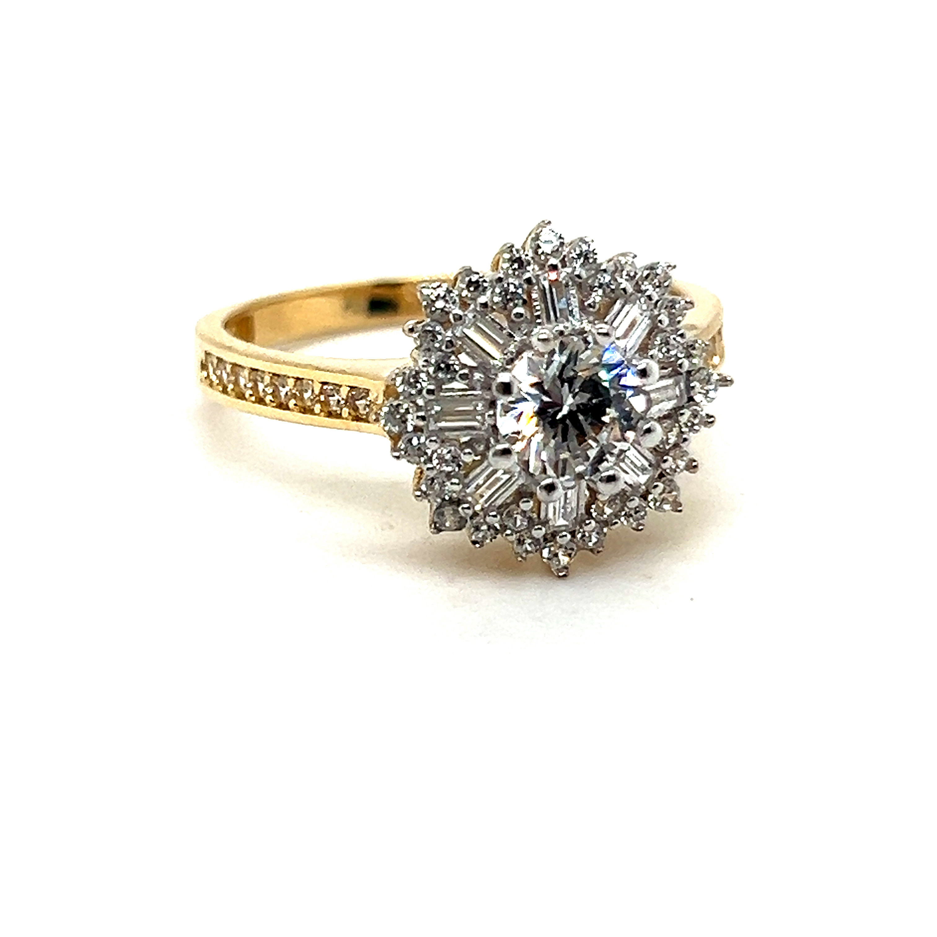 Пръстен от “Jacklin hugasian” в жълто злато с цирконии.