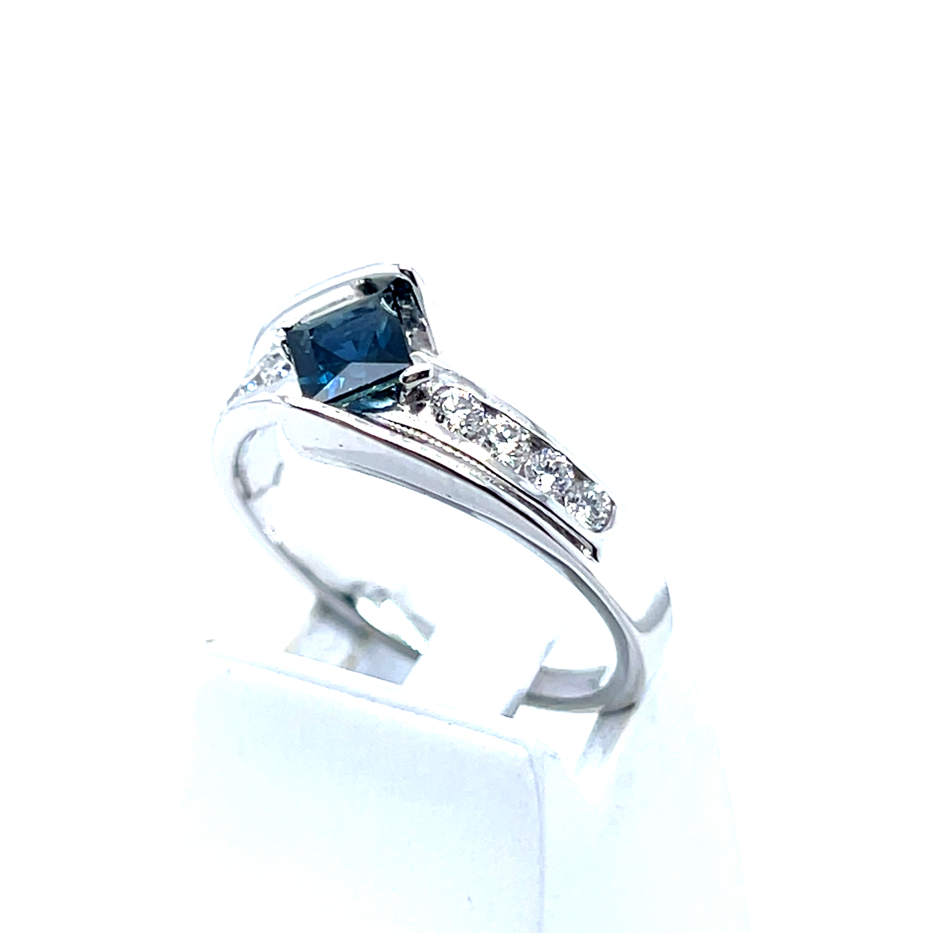 Пръстен от "Jacklin hugasian" в бяло злато със сапфир и диаманти.