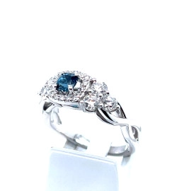 Пръстен от “Jacklin hugasian” в бяло злато с диаманти и лондон топаз.