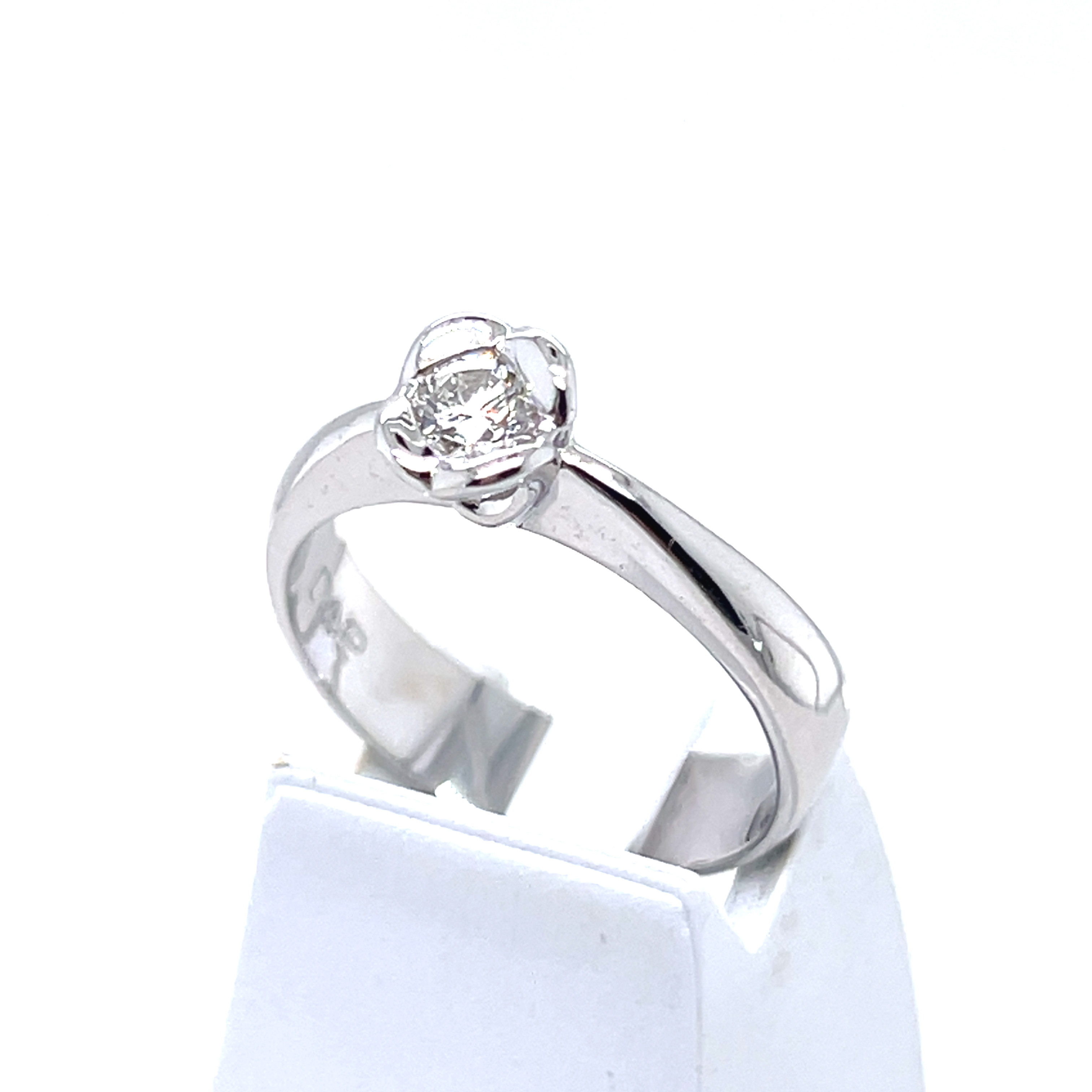 Пръстен от "Jacklin hugasian" в бяло злато с диамант.
