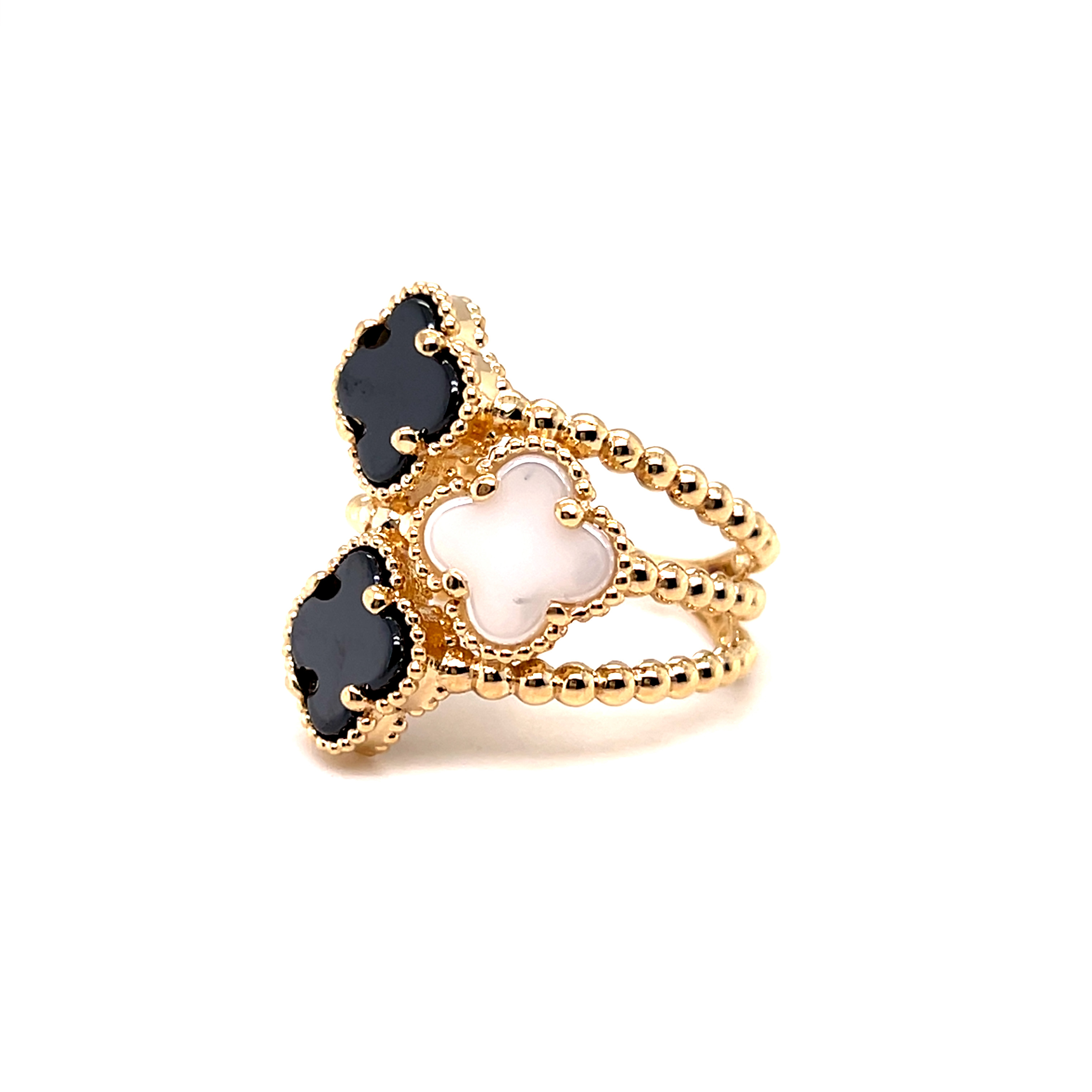 Пръстен от “Jacklin hugasian” в жълто злато с оникс и бял ахат
