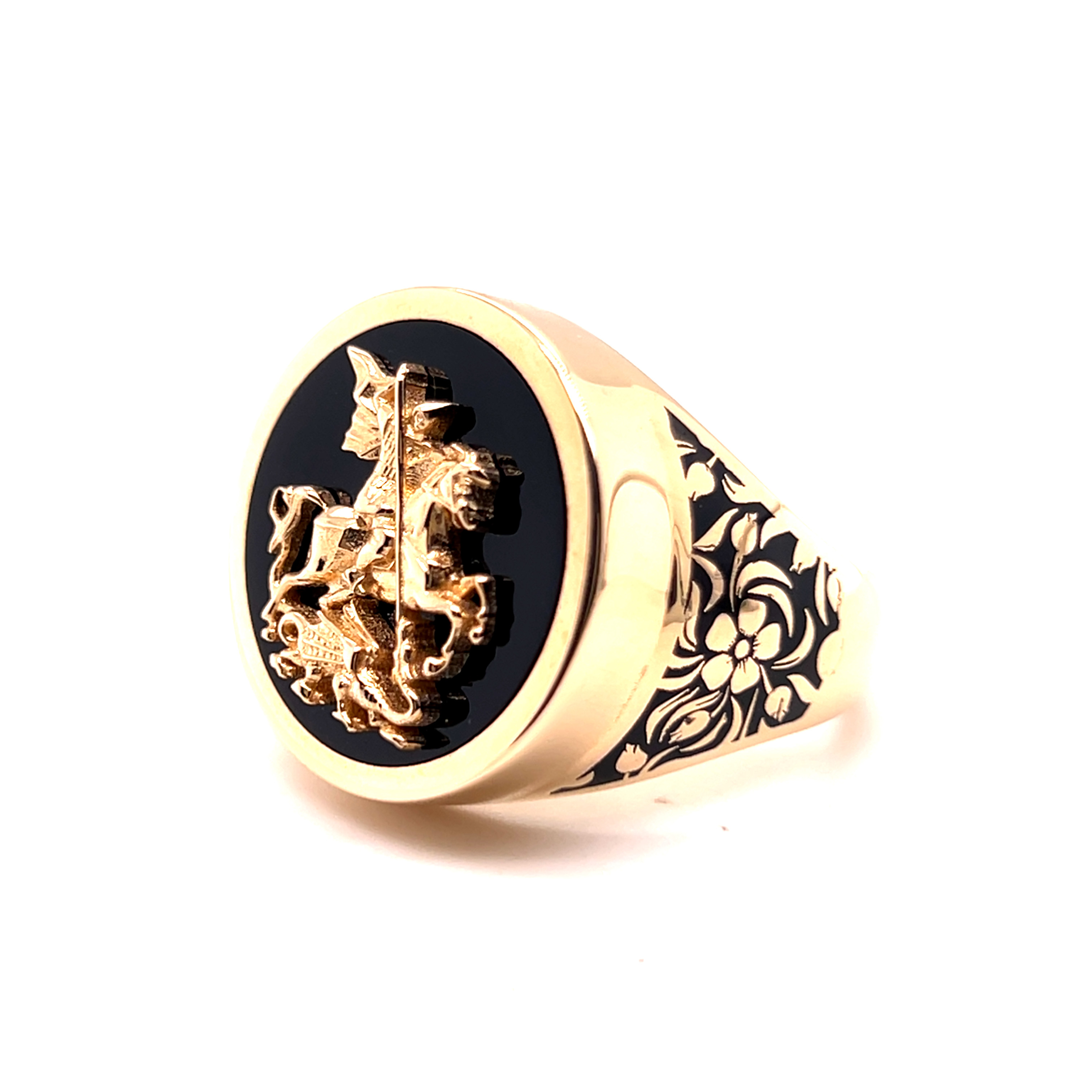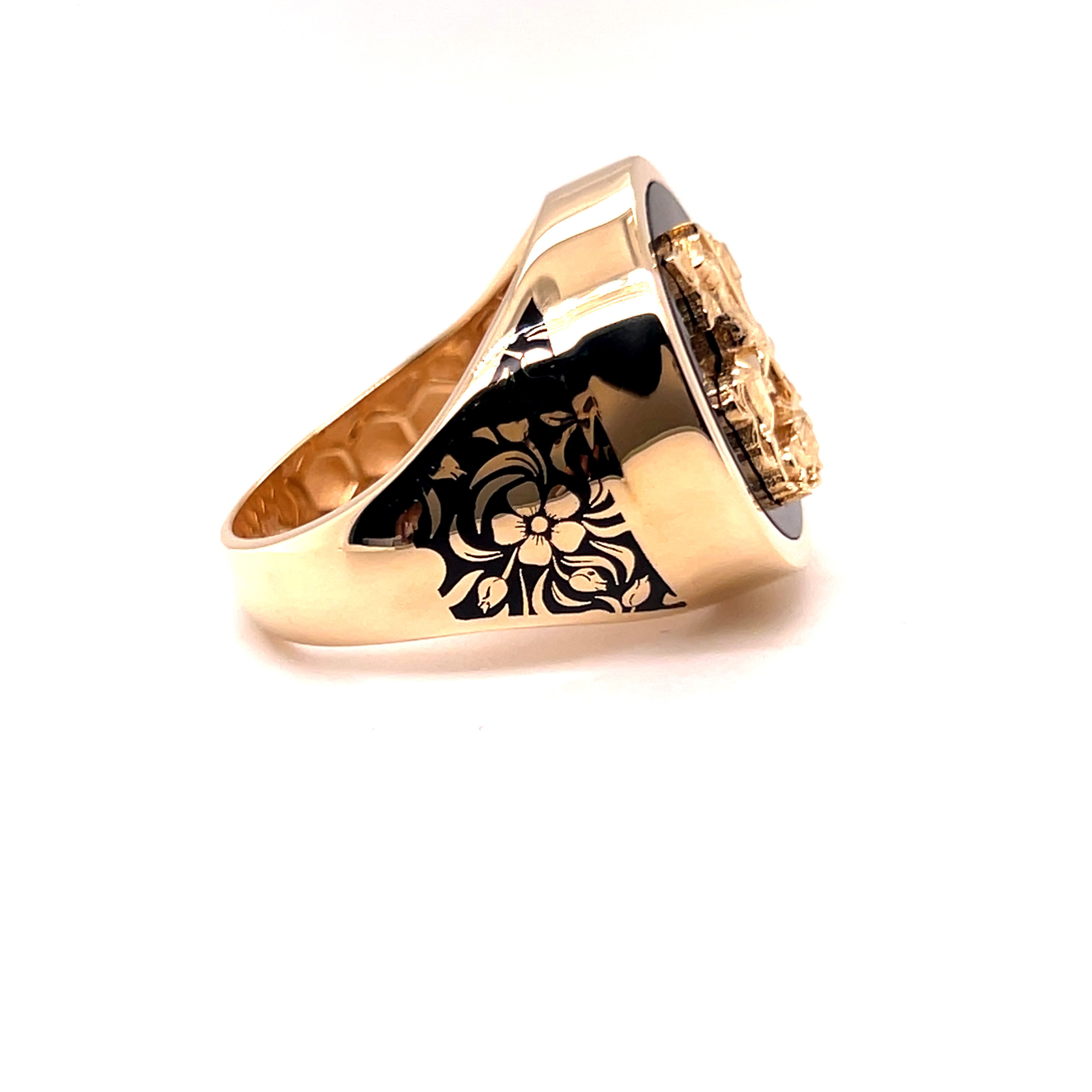 Мъжки пръстен от "Jacklin hugasian" в жълто злато с оникс и емайл.