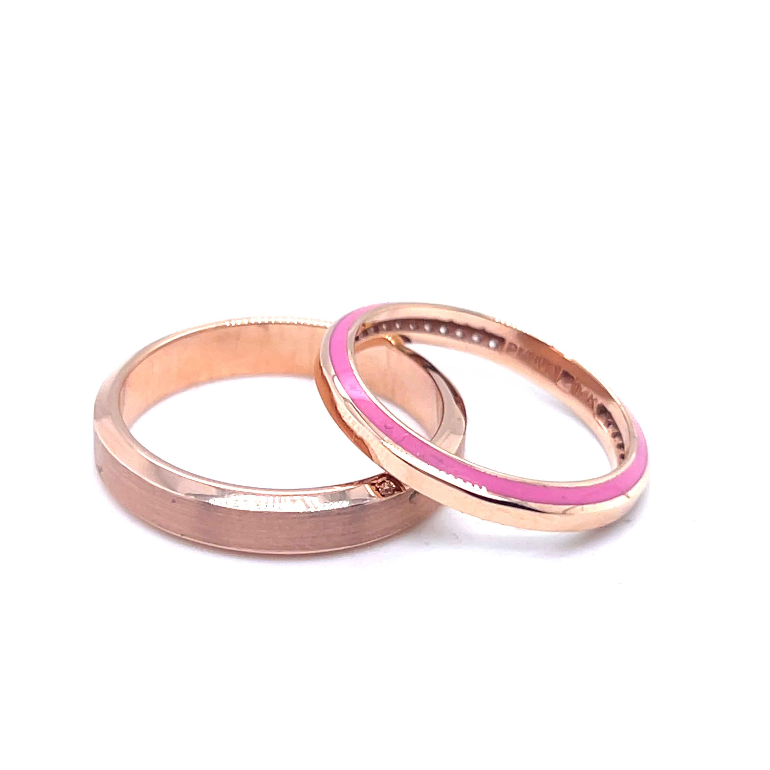 Венчални халки от "Jacklin hugasian" в розово злато с циркони