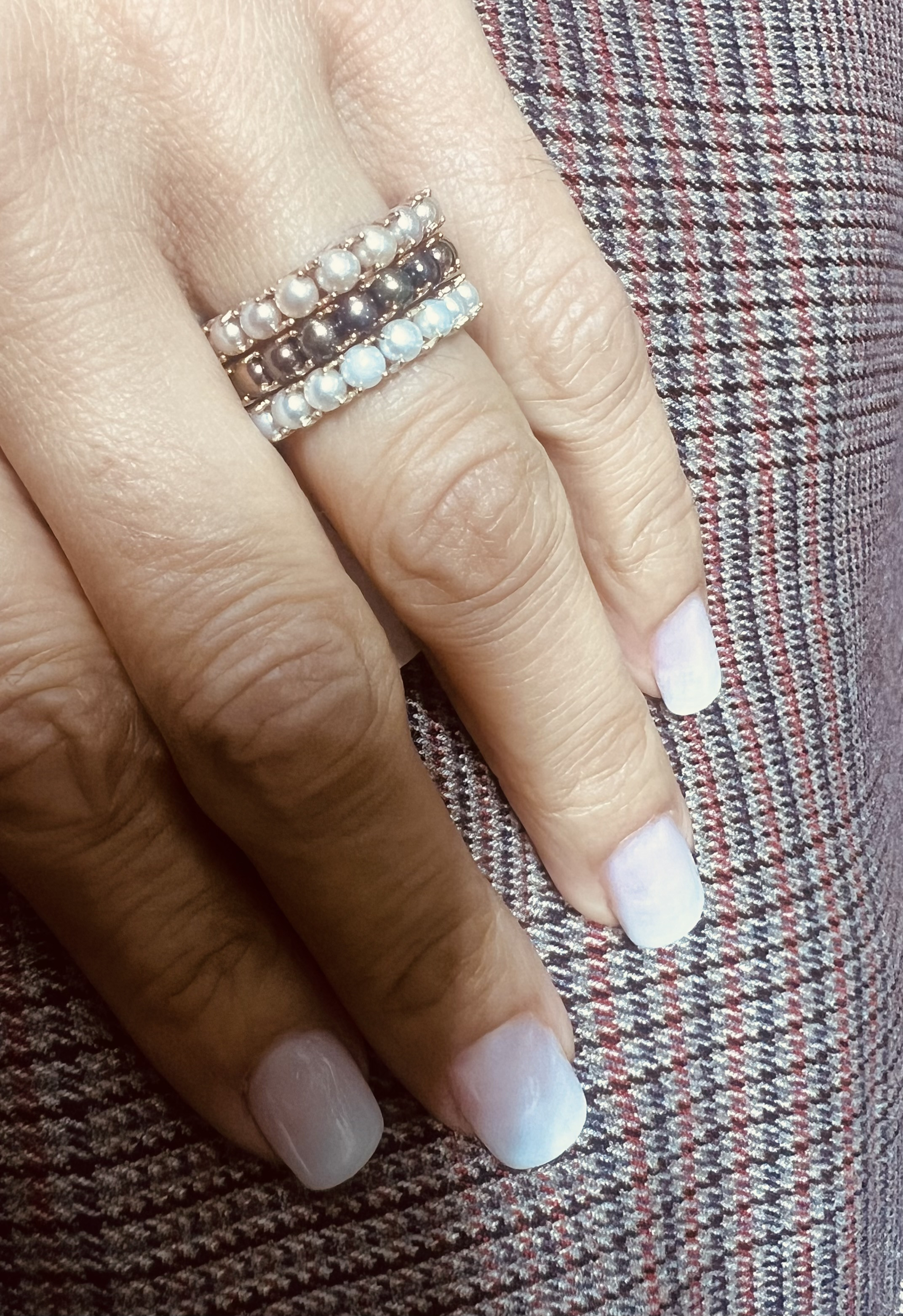Пръстен от “Jacklin hugasian” в жълто и в розово злато, с бяла или тъмна перла