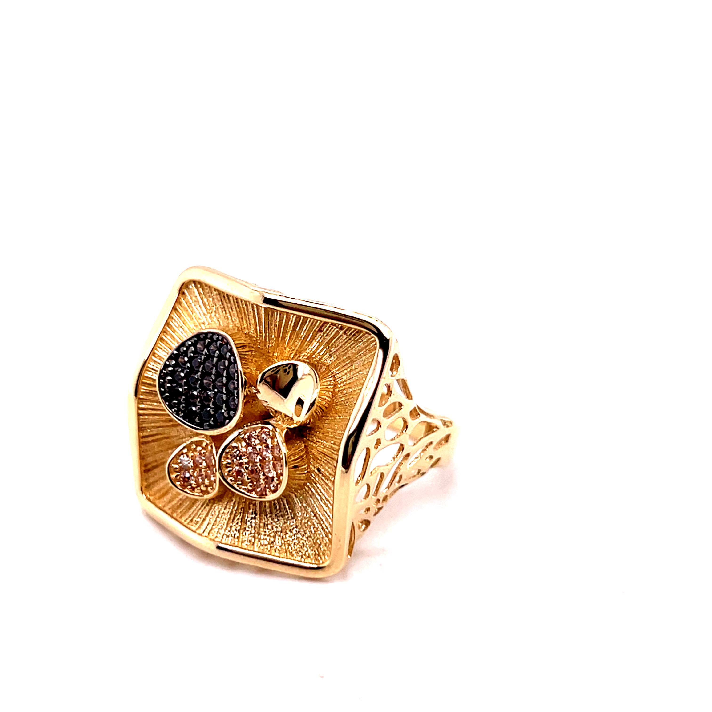 Пръстен от "Jacklin hugasian" в жълто злато с оникс и златист топаз