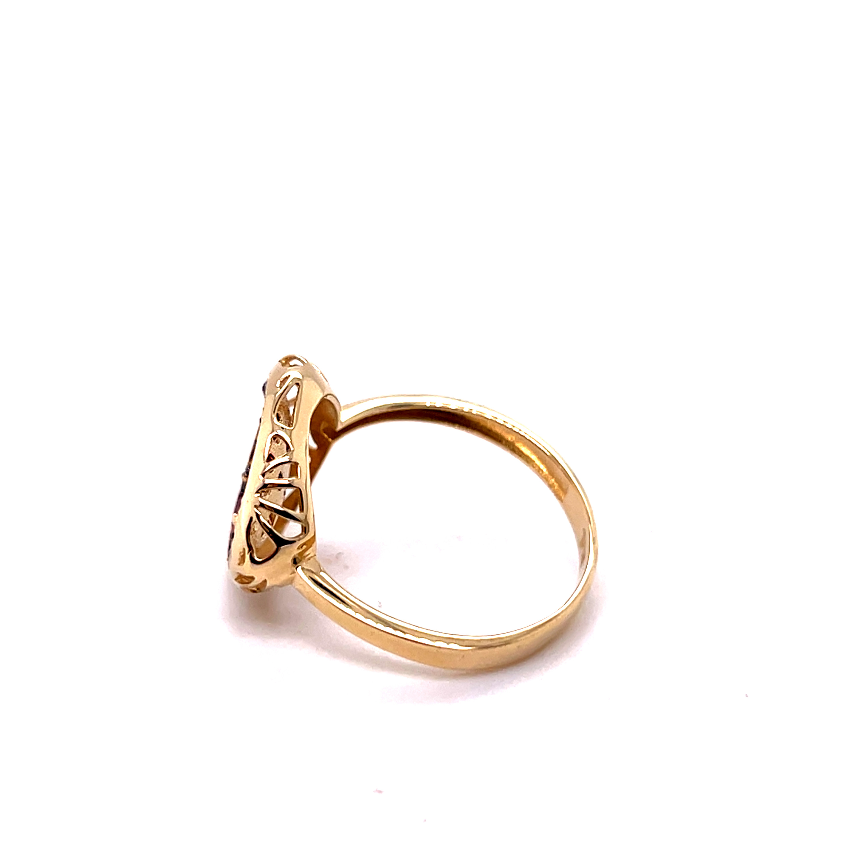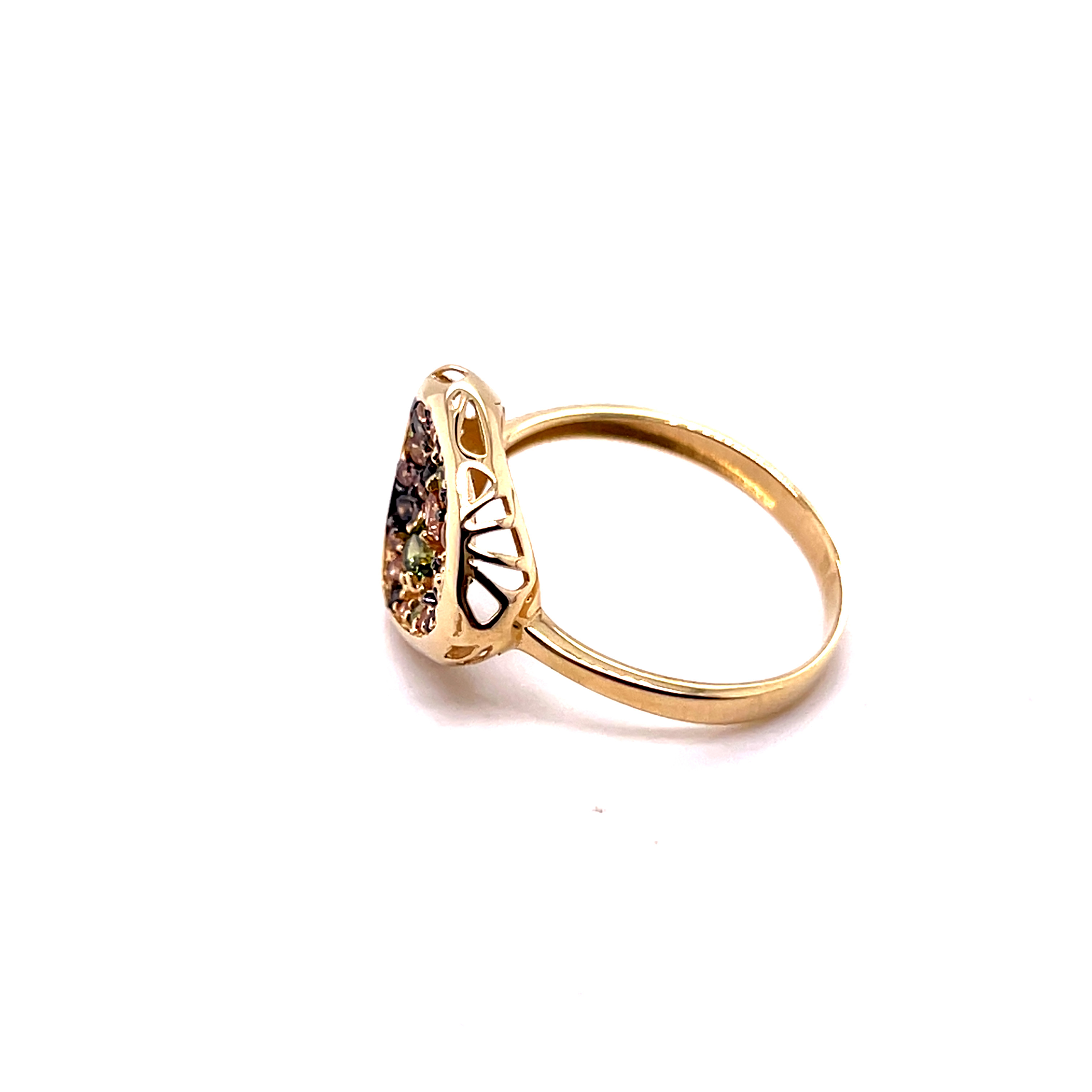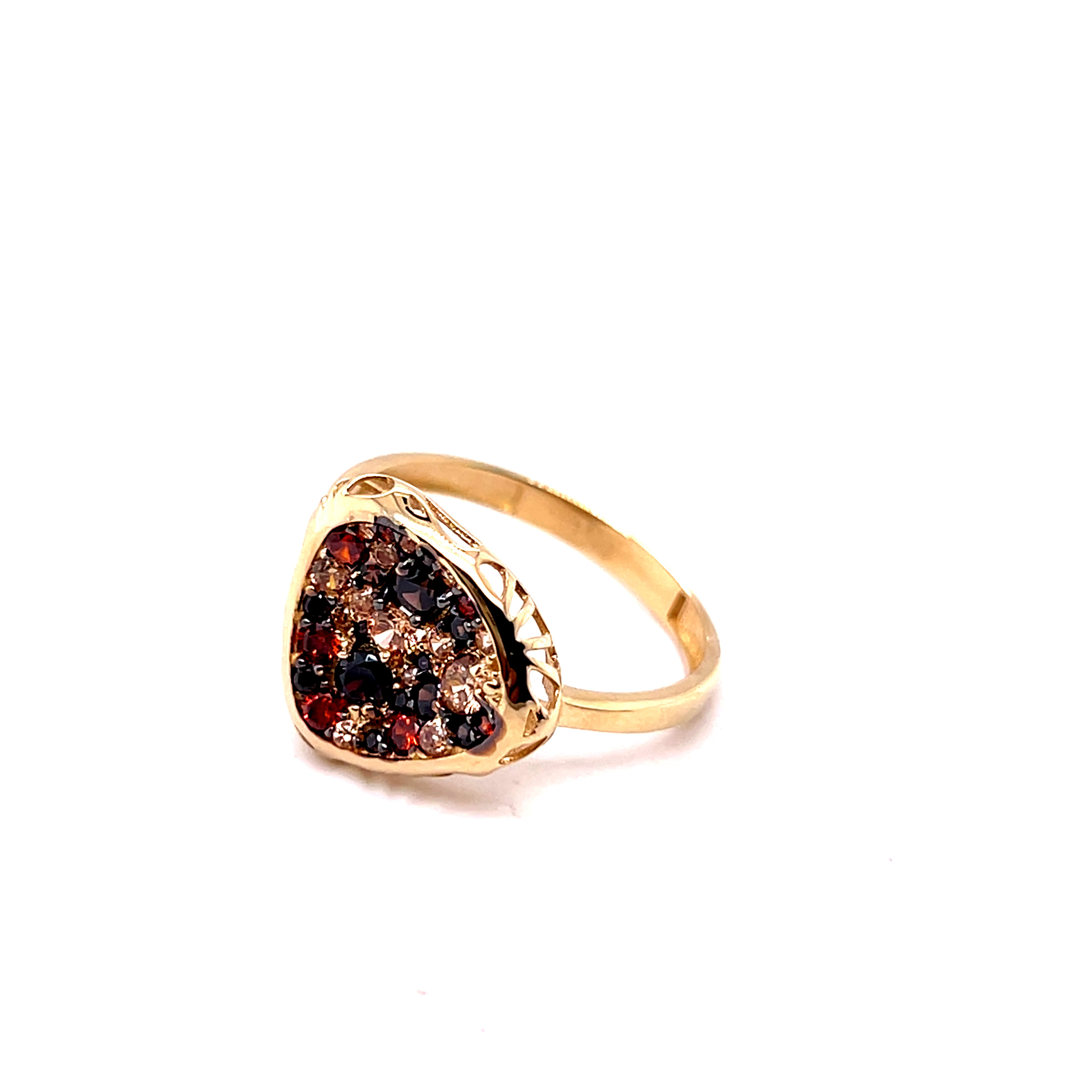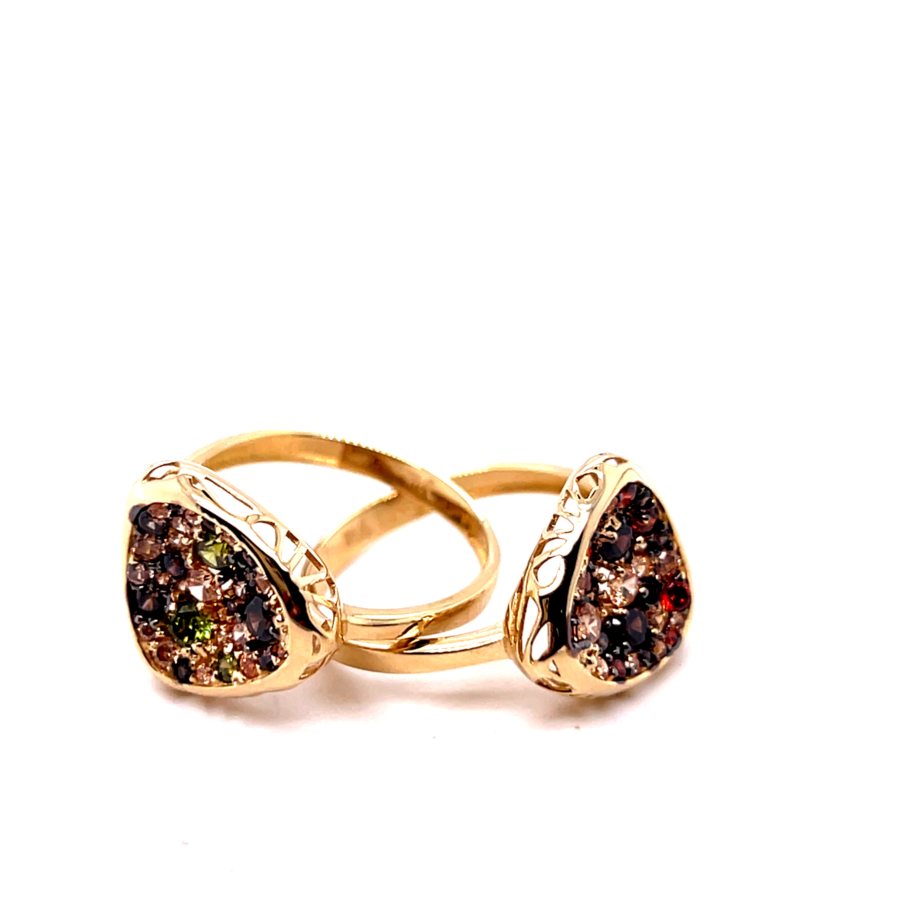 Пръстен от "Jacklin hugasian" в жълто злато с гранат, перидот и топази