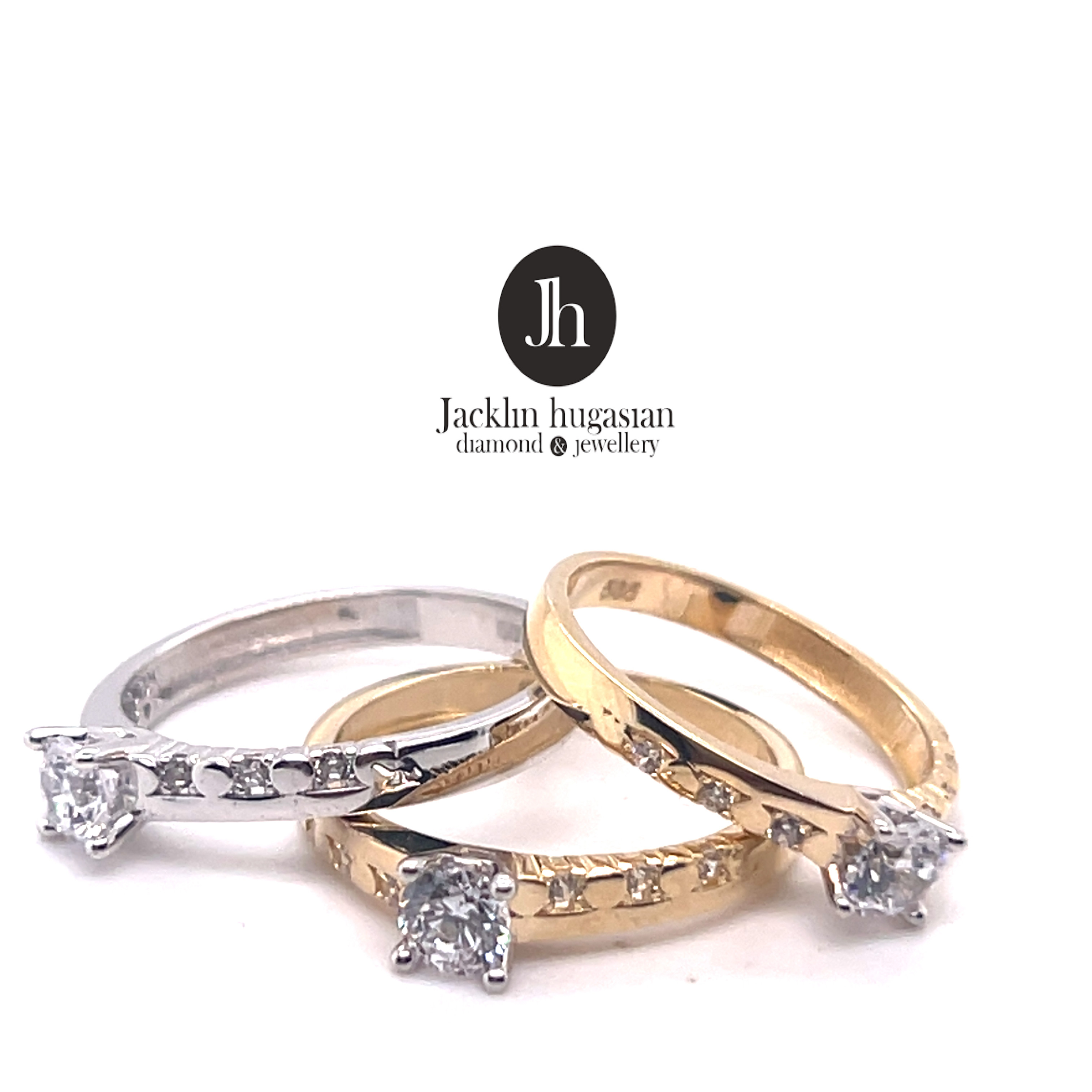 Пръстен от “Jacklin hugasian” в жълто и в бяло злато с циркони.