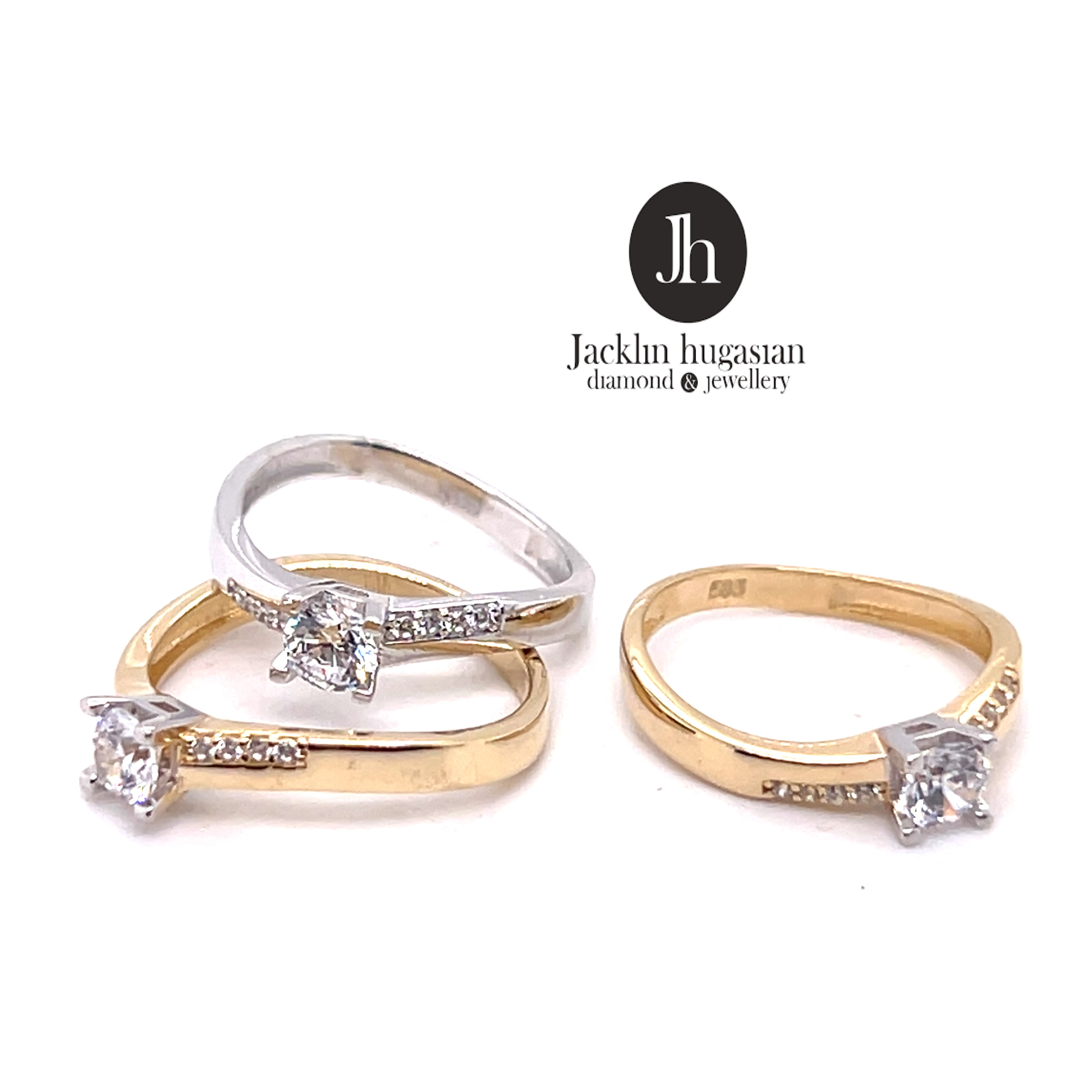 Пръстен от “Jacklin hugasian” в жълто и в бяло злато с циркони.