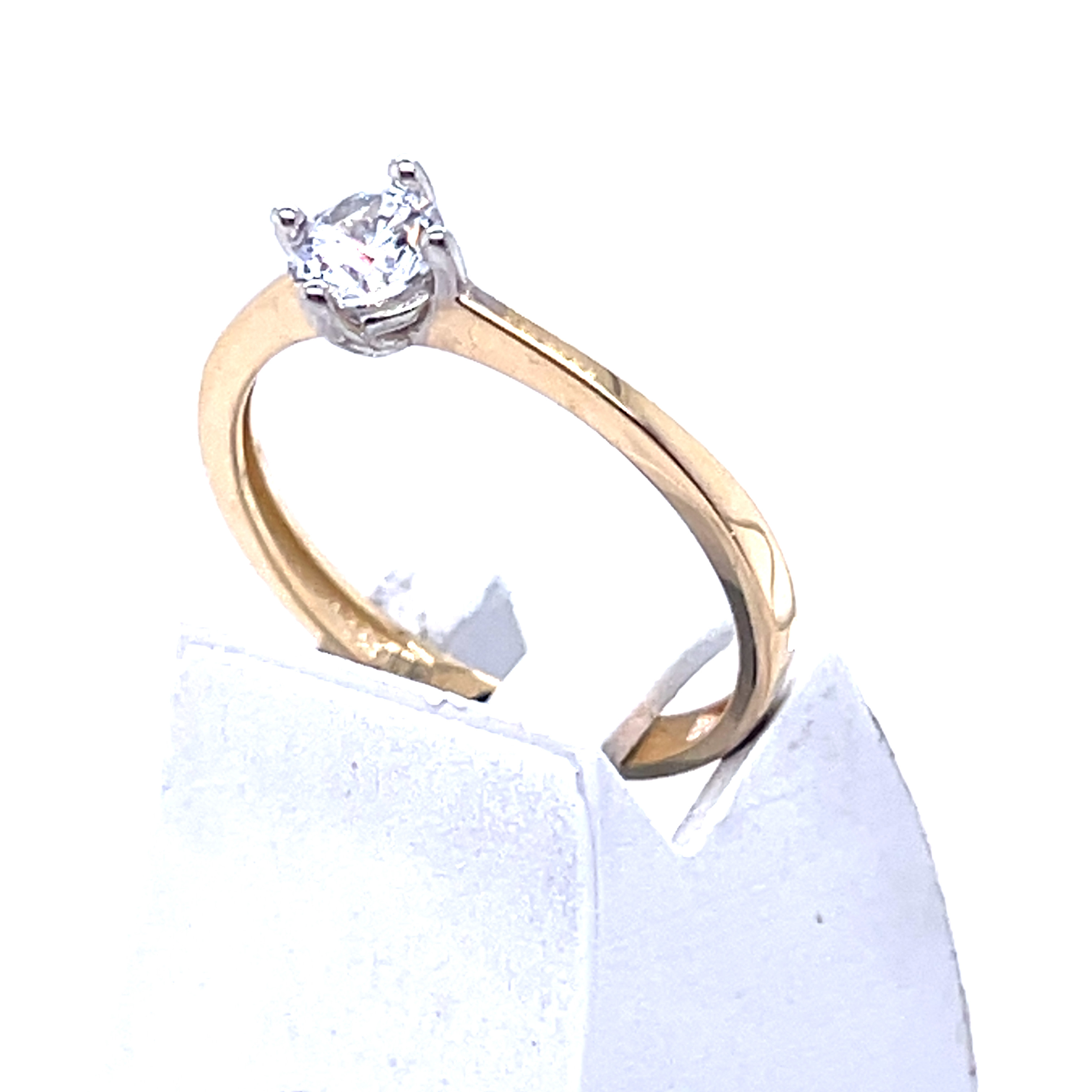 Пръстен от “Jacklin hugasian” в жълто злато с циркони.