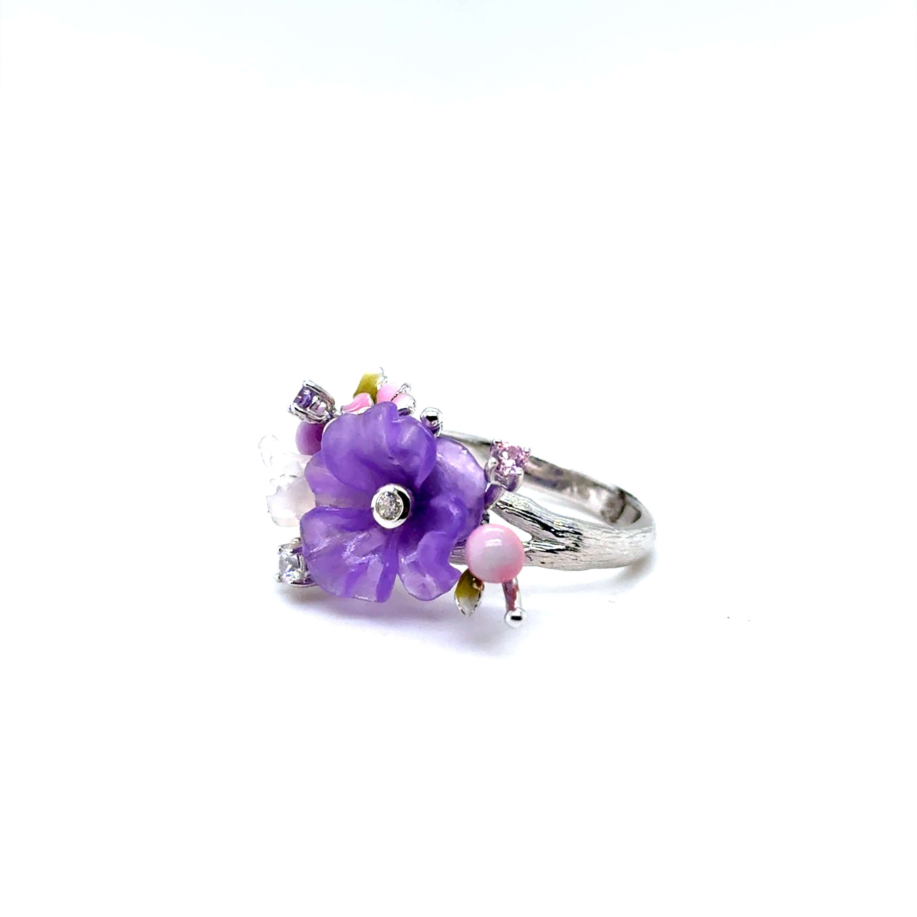 Пръстен от "Jacklin hugasian" в сребро с аметист,розов кварц, цветен емайл и циркони