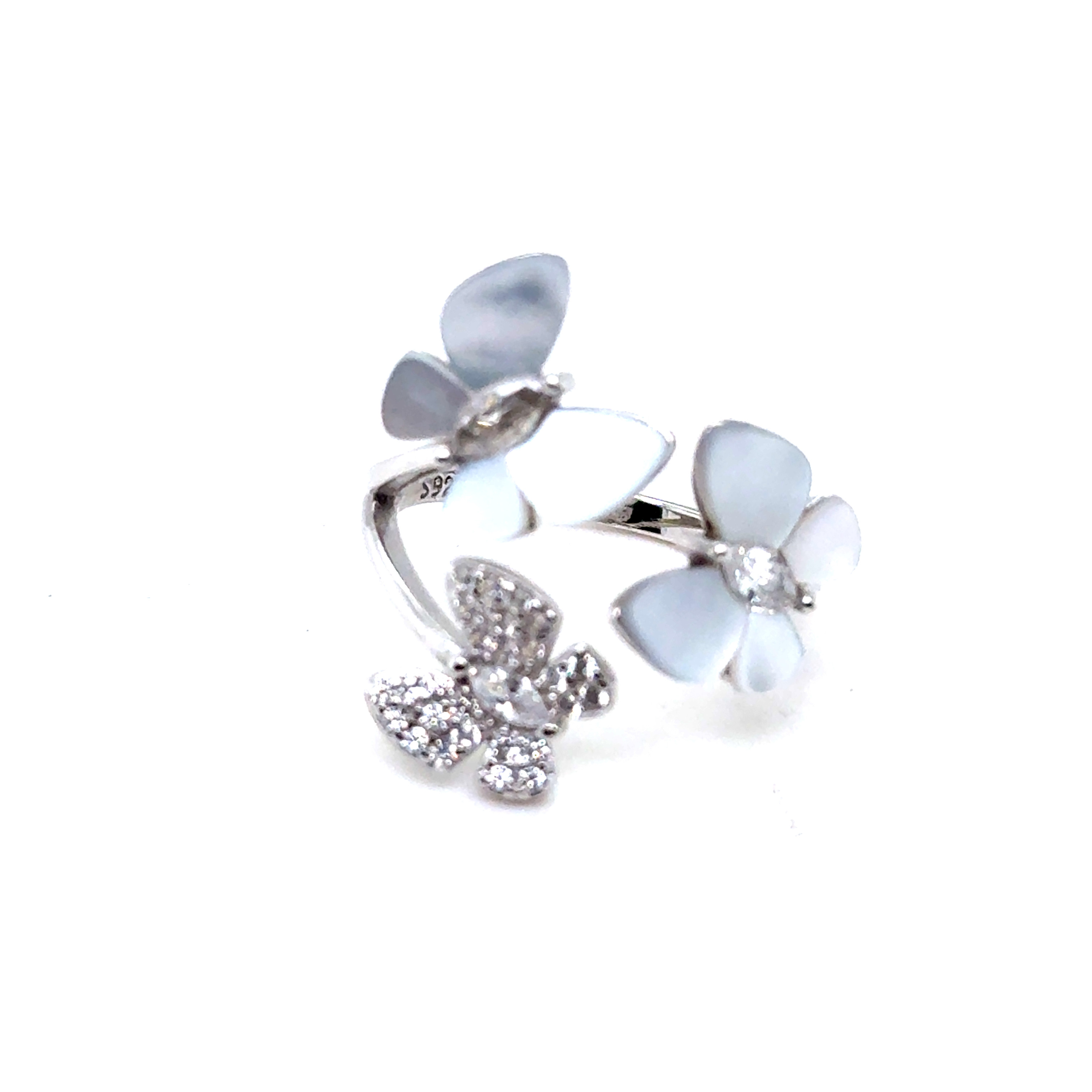 Пръстен от "Jacklin hugasian" в сребро със седеф и циркони