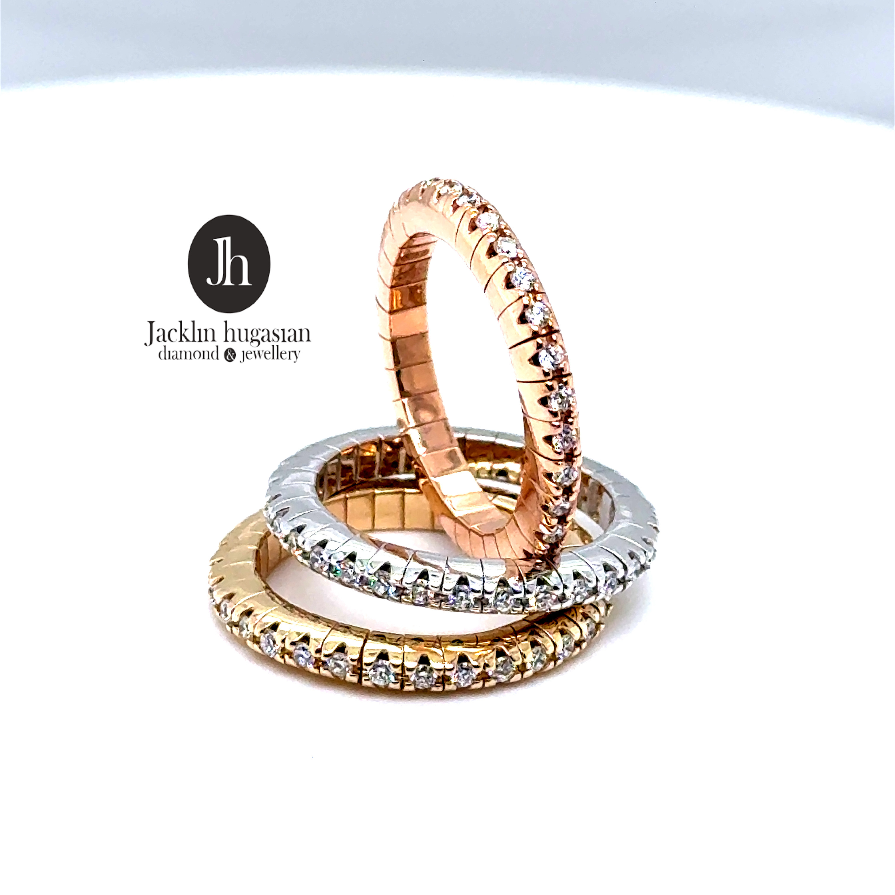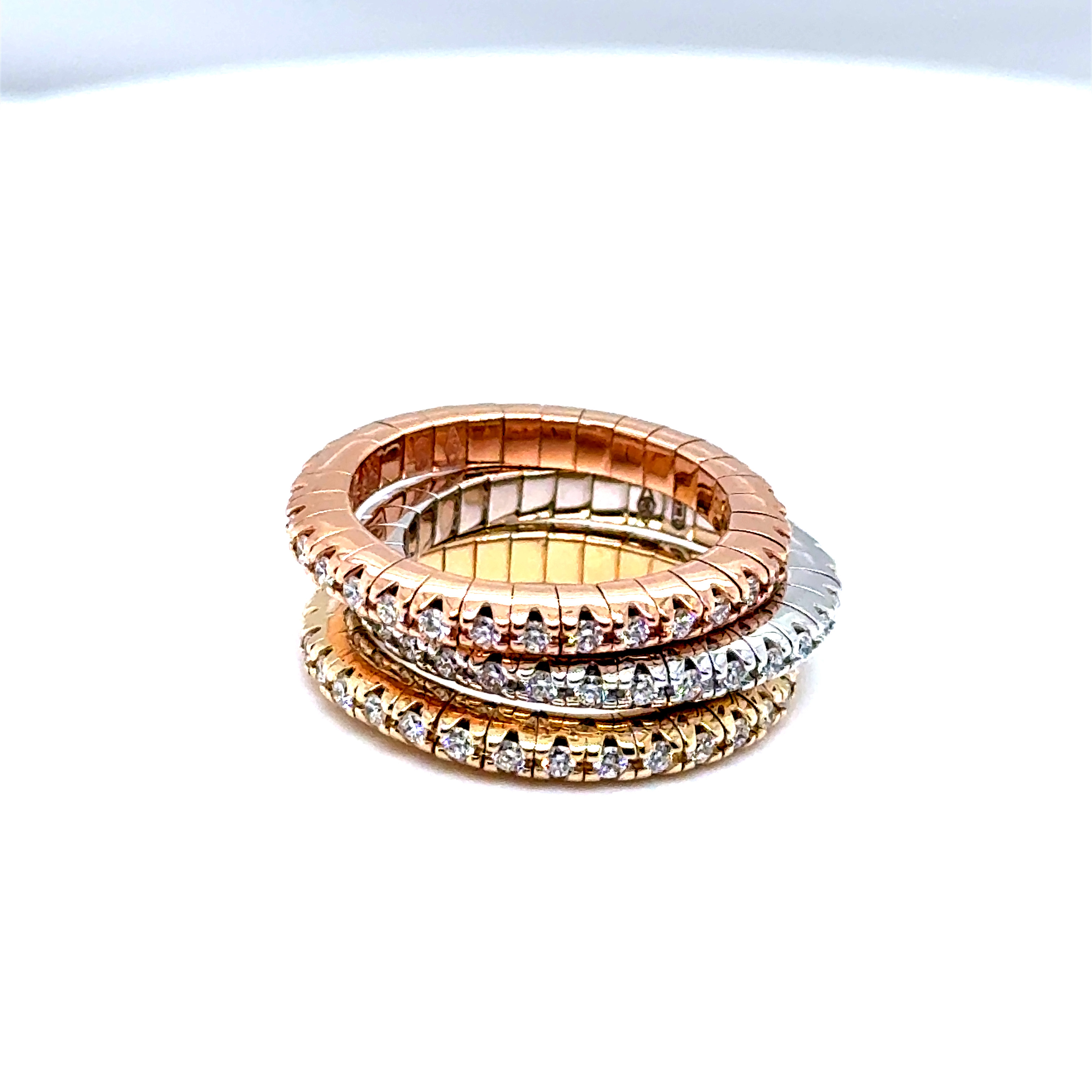 Пръстен от "Jacklin hugasian" в бяло, жълто и розово злато с диаманти.
