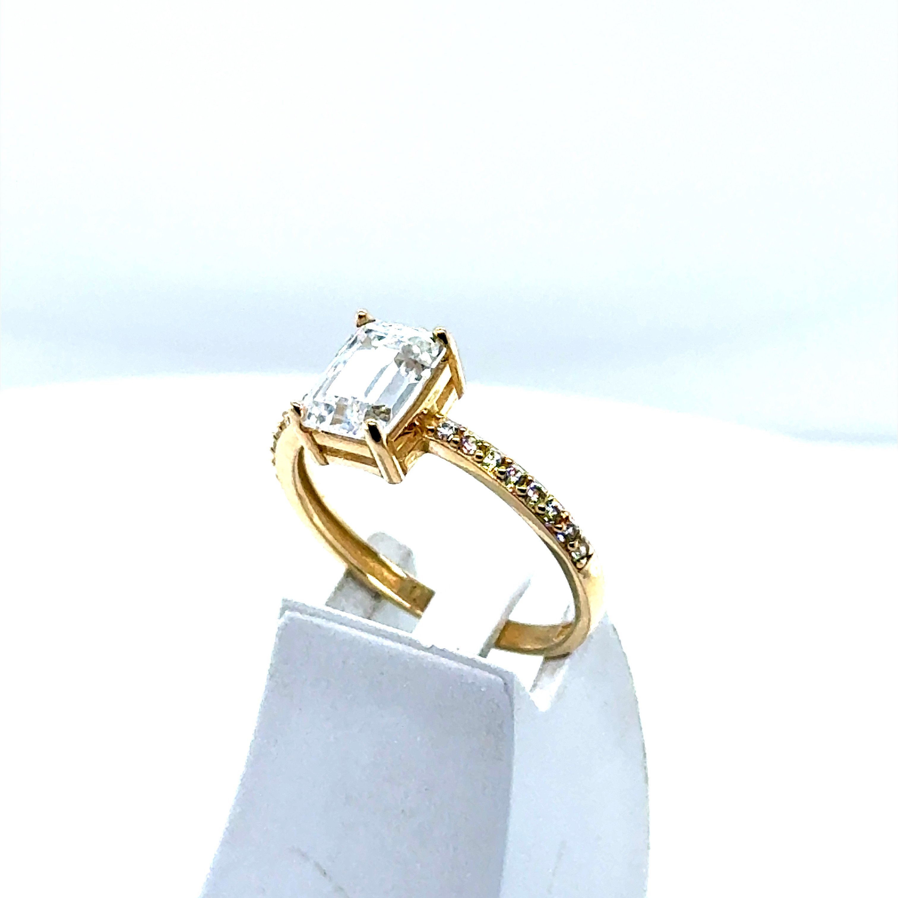 Пръстен от “Jacklin hugasian” в жълто злато с циркони.