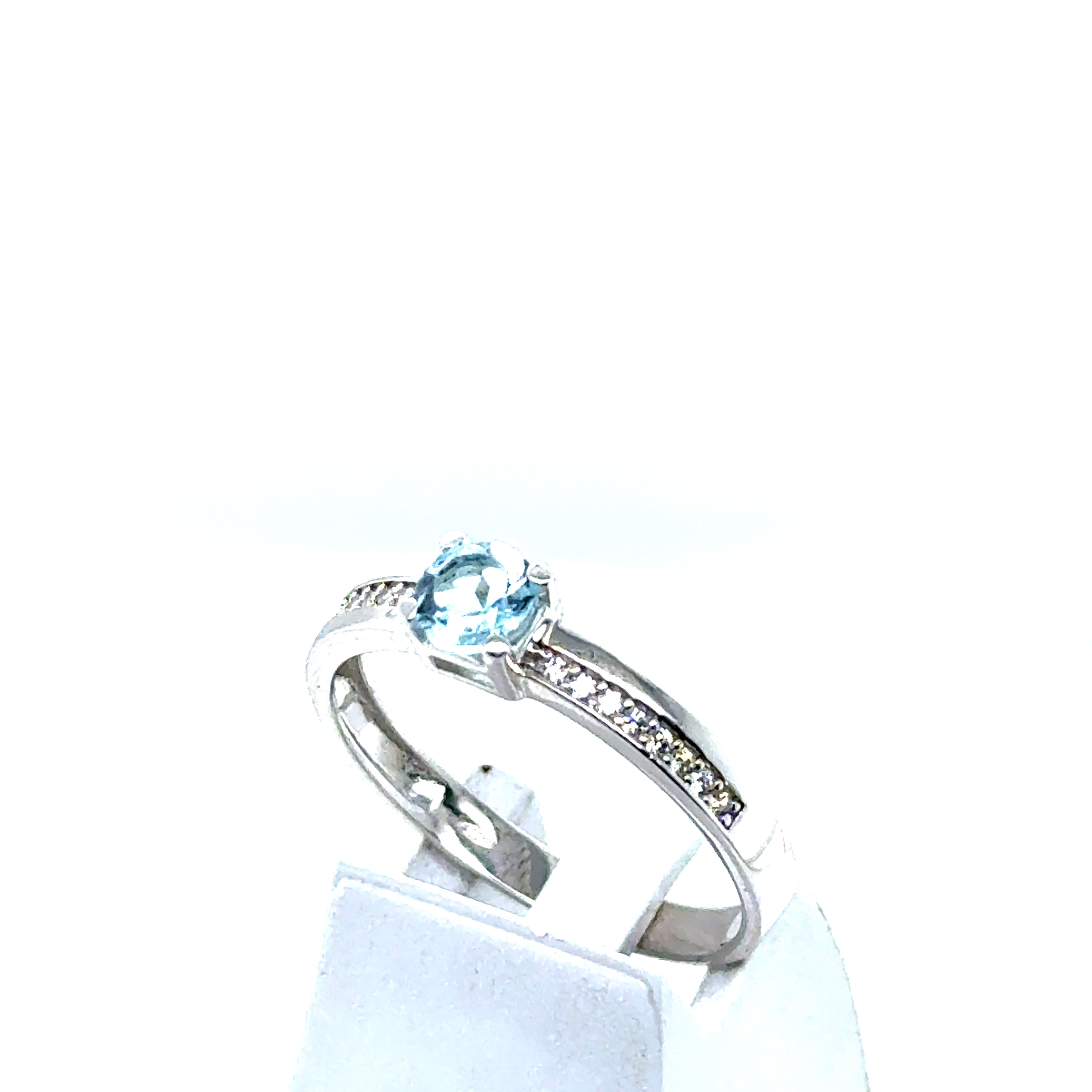 Пръстен от “Jacklin hugasian” в бяло злато с циркони и аквамарин.
