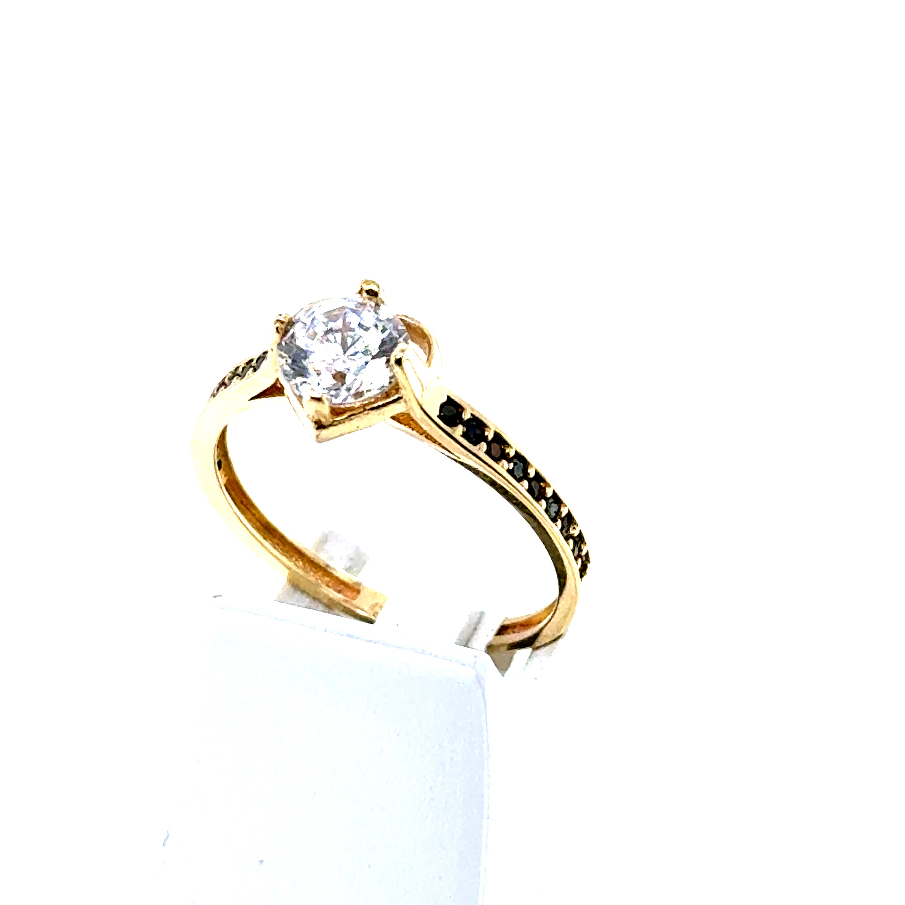 Пръстен от “Jacklin hugasian” в жълто злато с цирконий и оникс