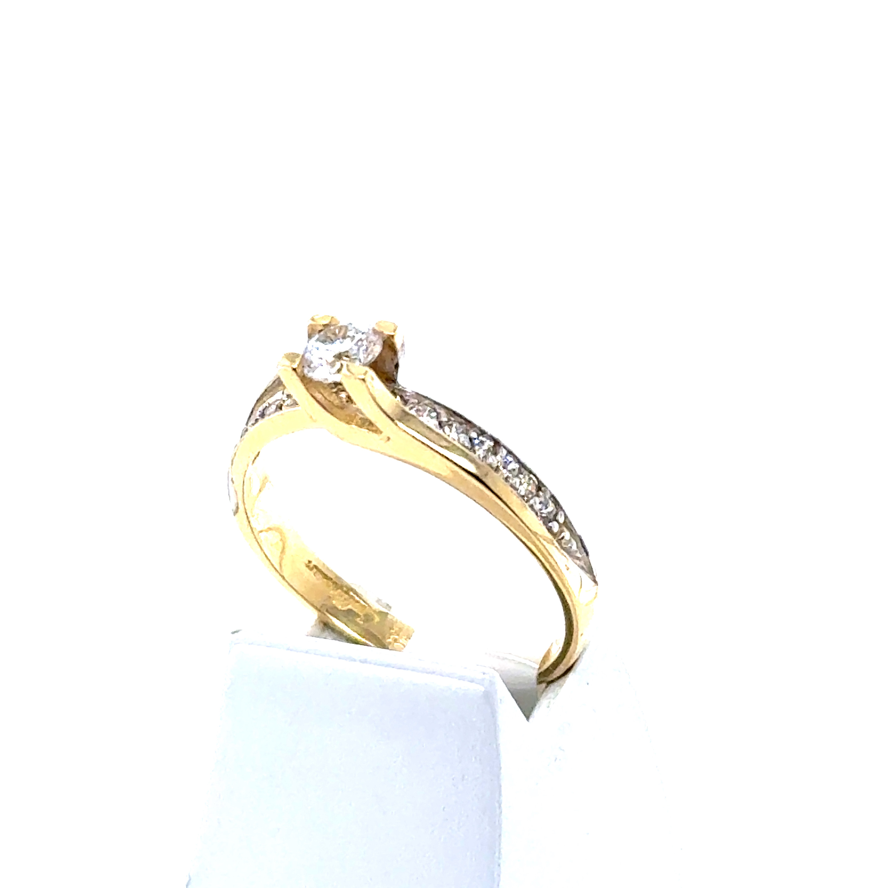Пръстен от “Jacklin hugasian” в жълто злато с циркони.