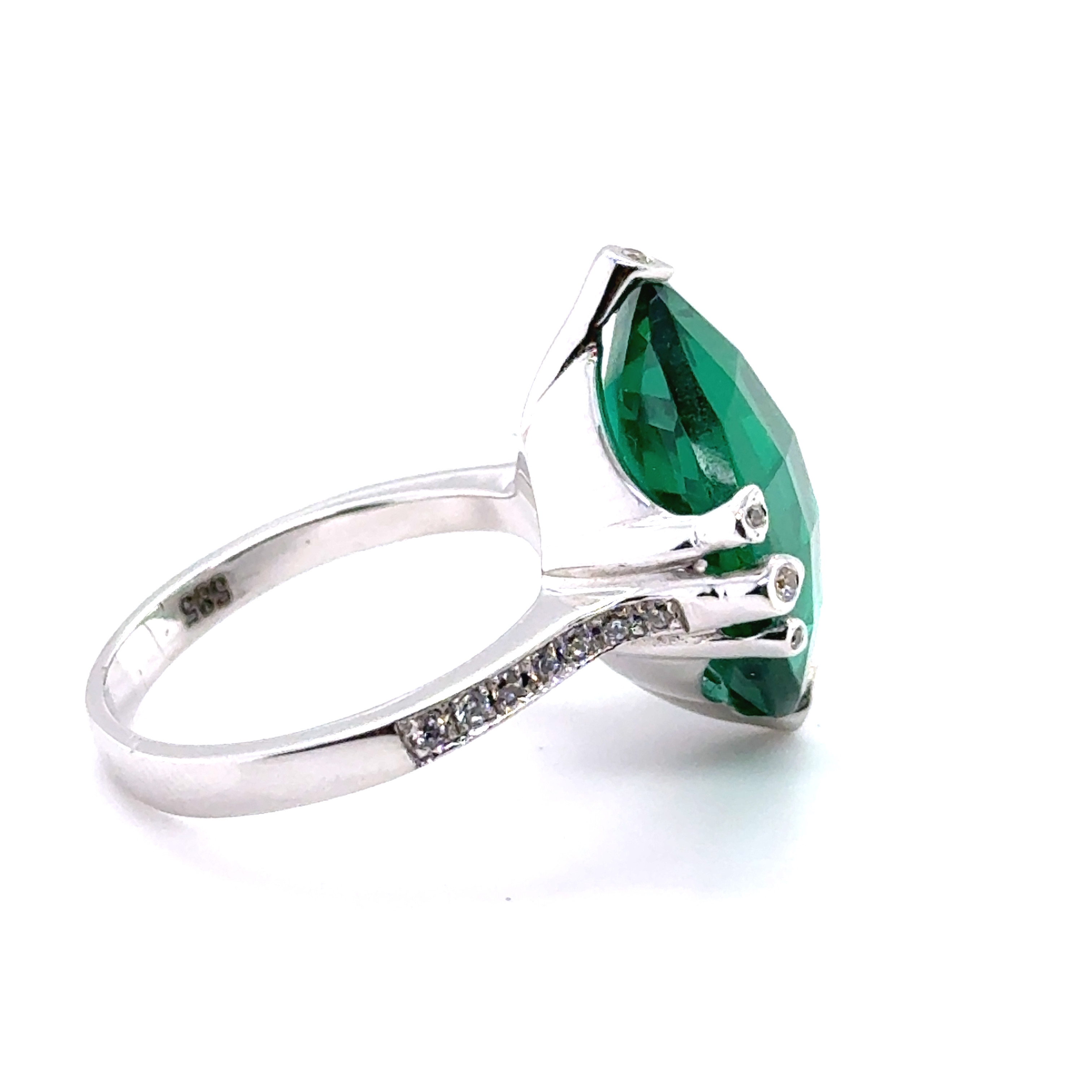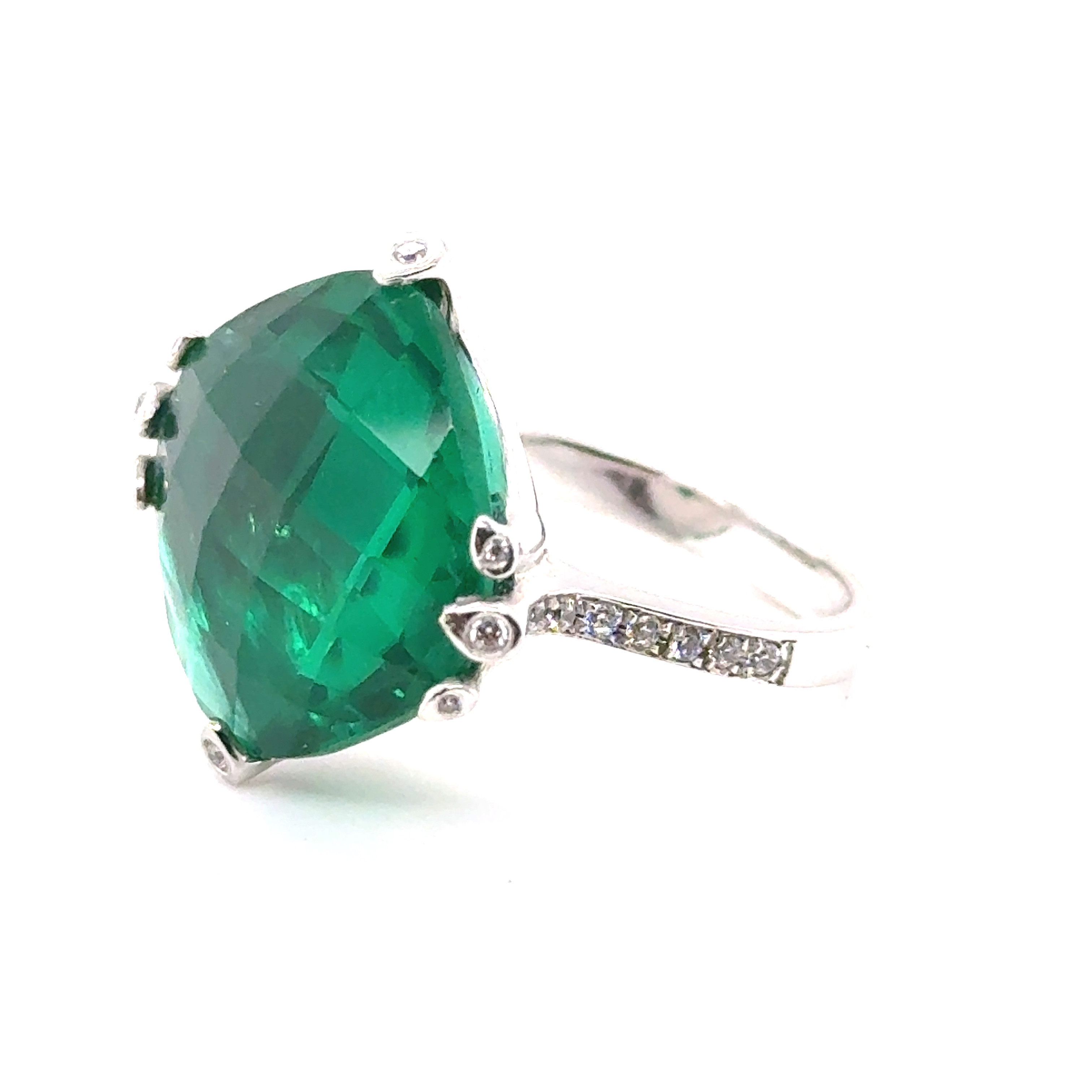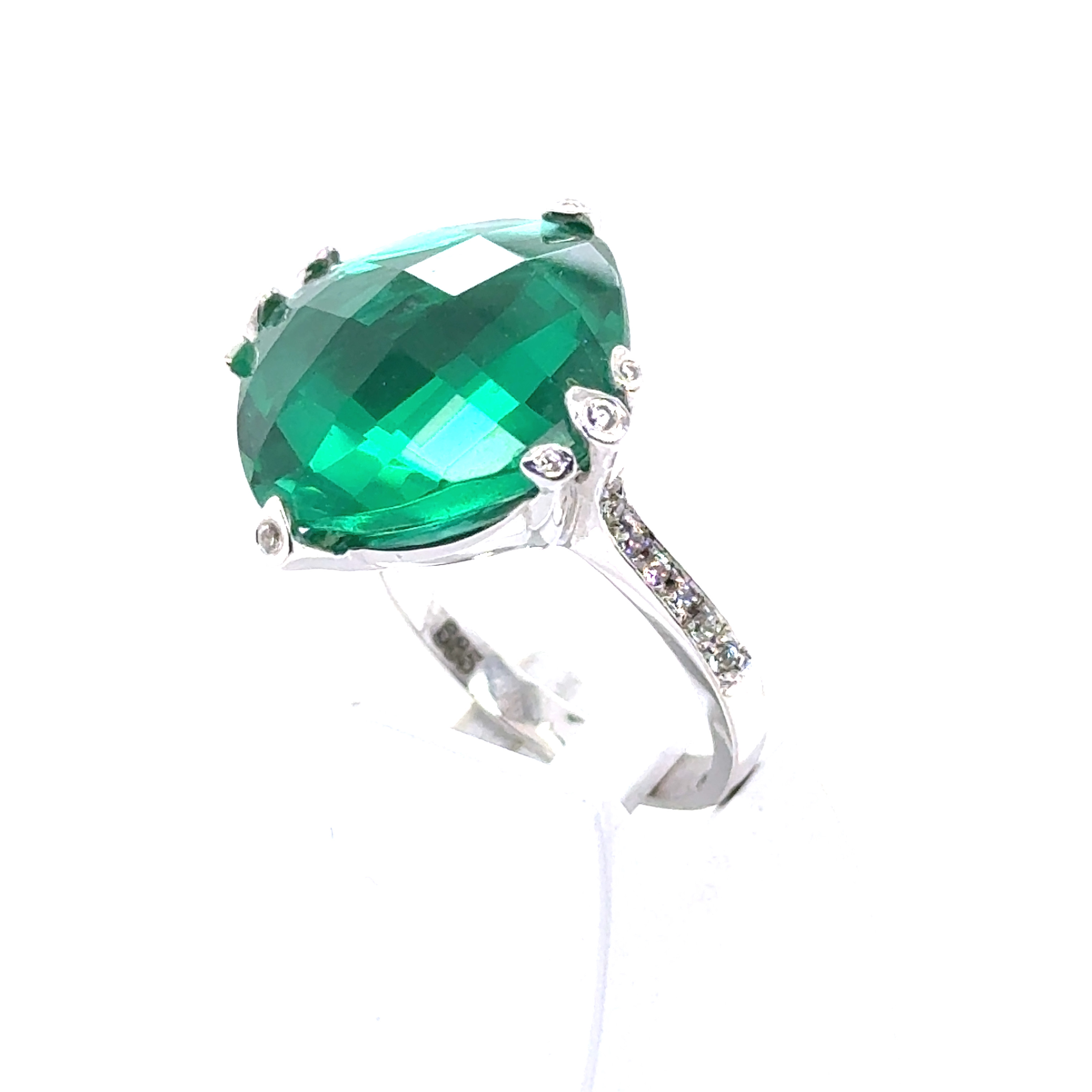 Пръстен от “Jacklin hugasian” в бяло злато с изумруд и циркони.