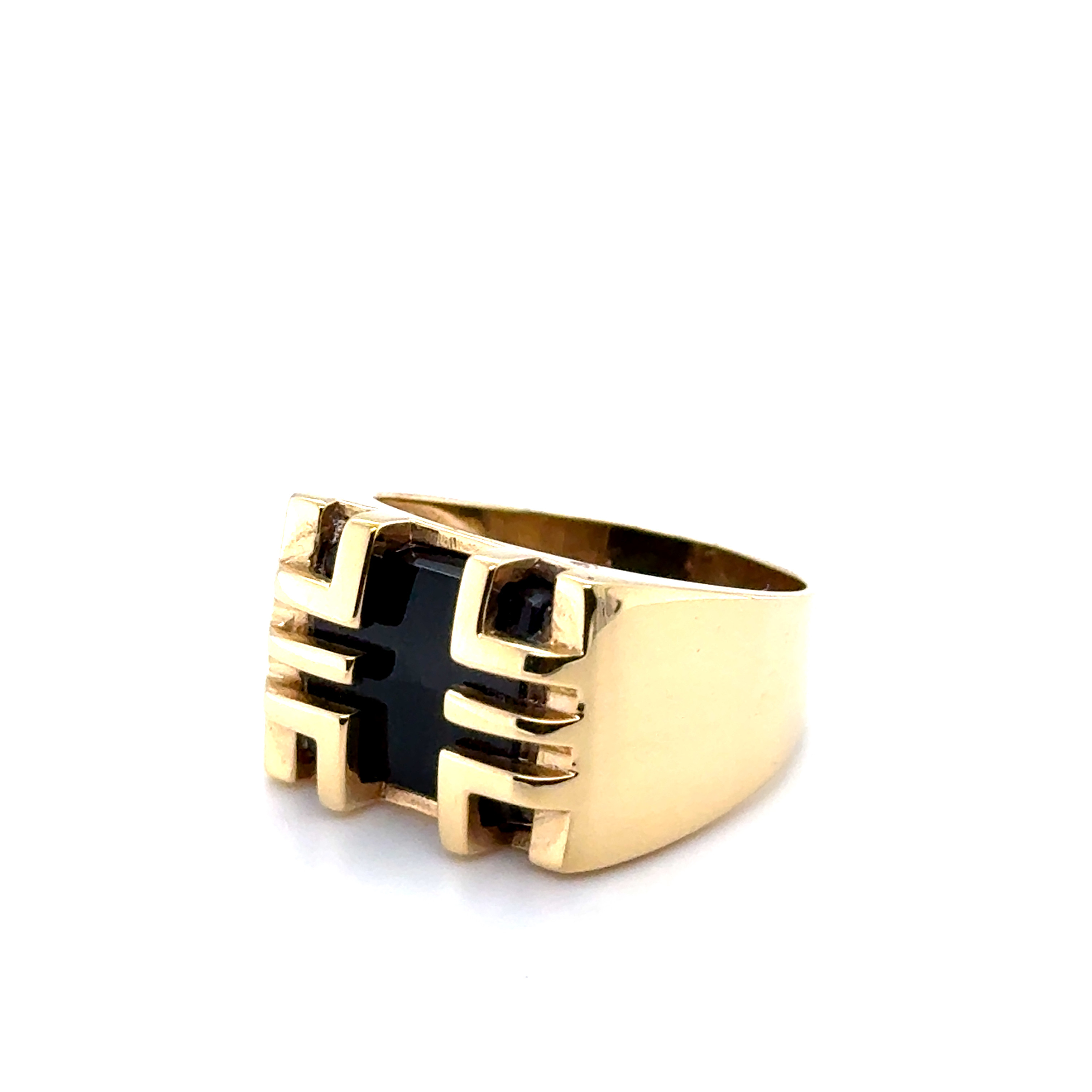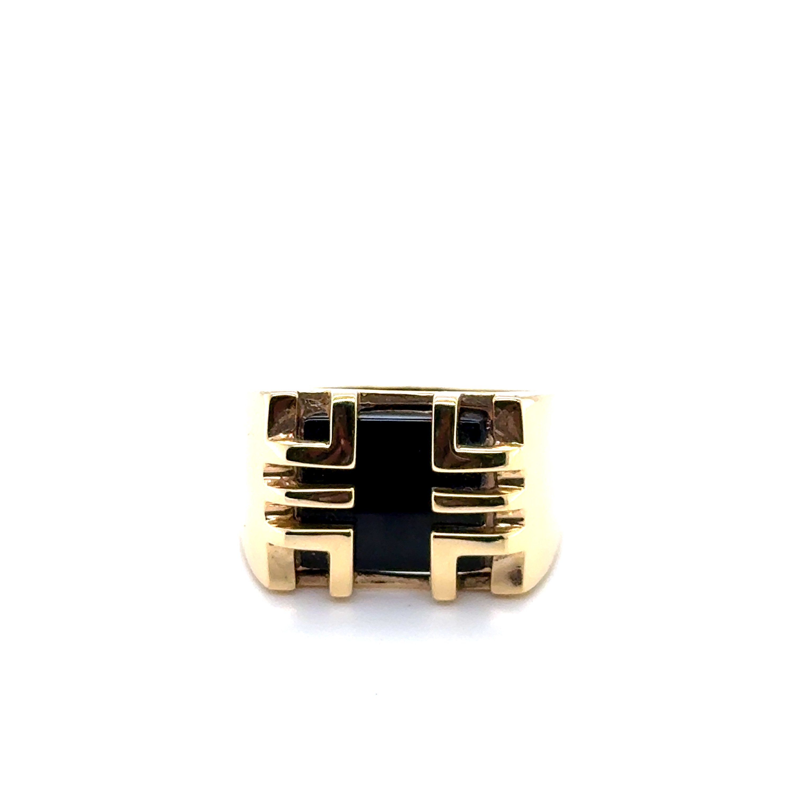 Пръстен от “Jacklin hugasian” в жълто злато с оникс.