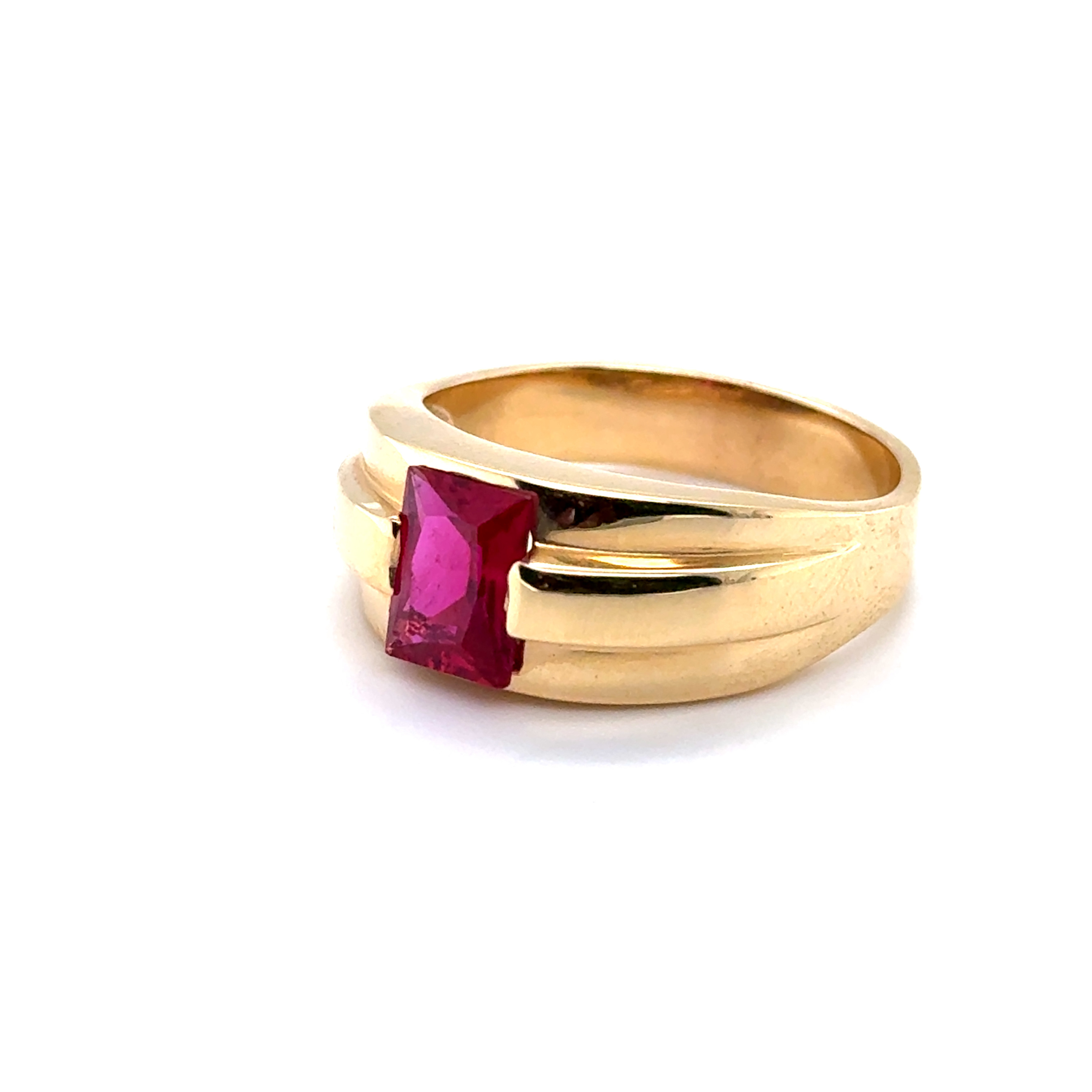 Пръстен от "Jacklin hugasian" в жълто злато с рубин.