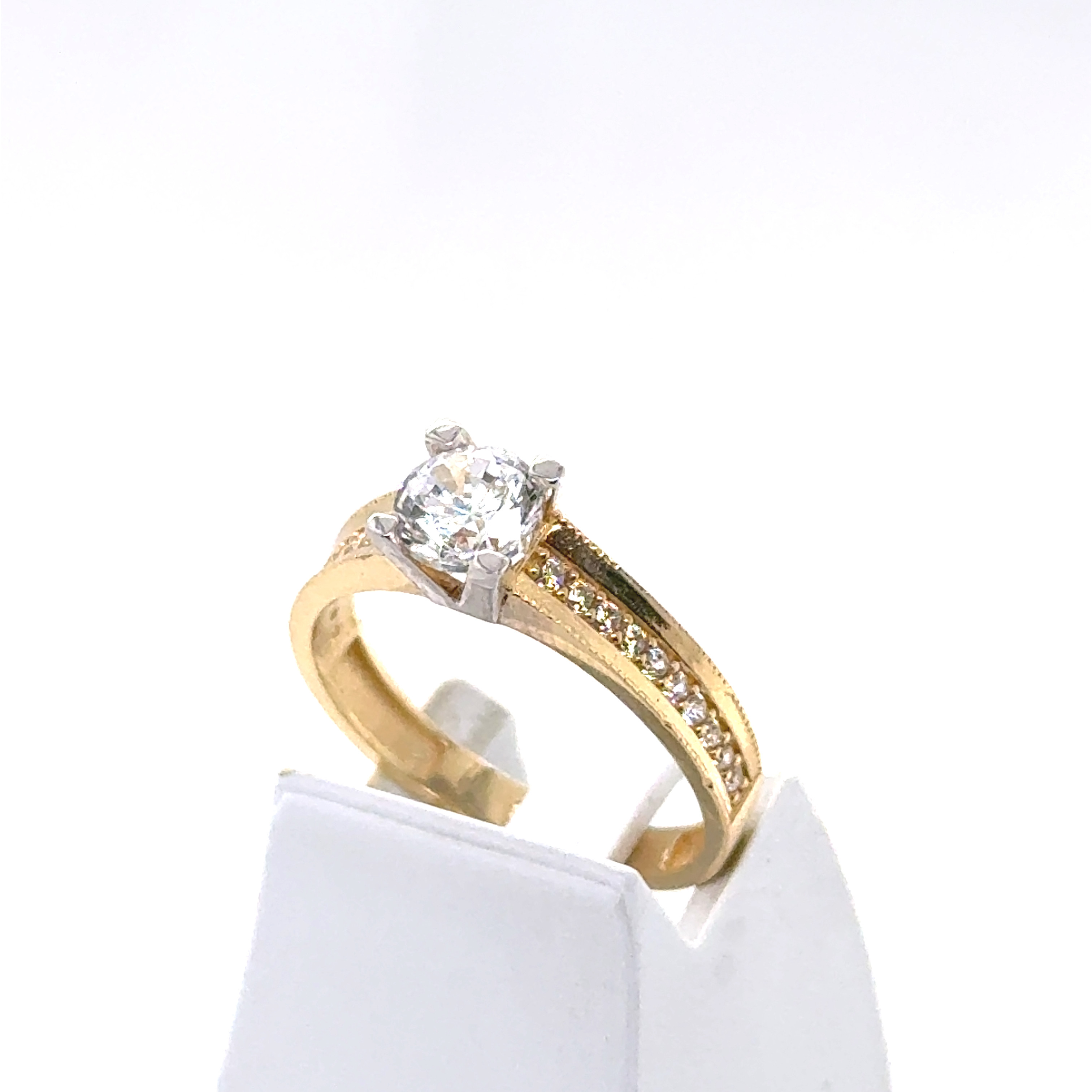 Пръстен от “Jacklin hugasian” в жълто злато с циркони.