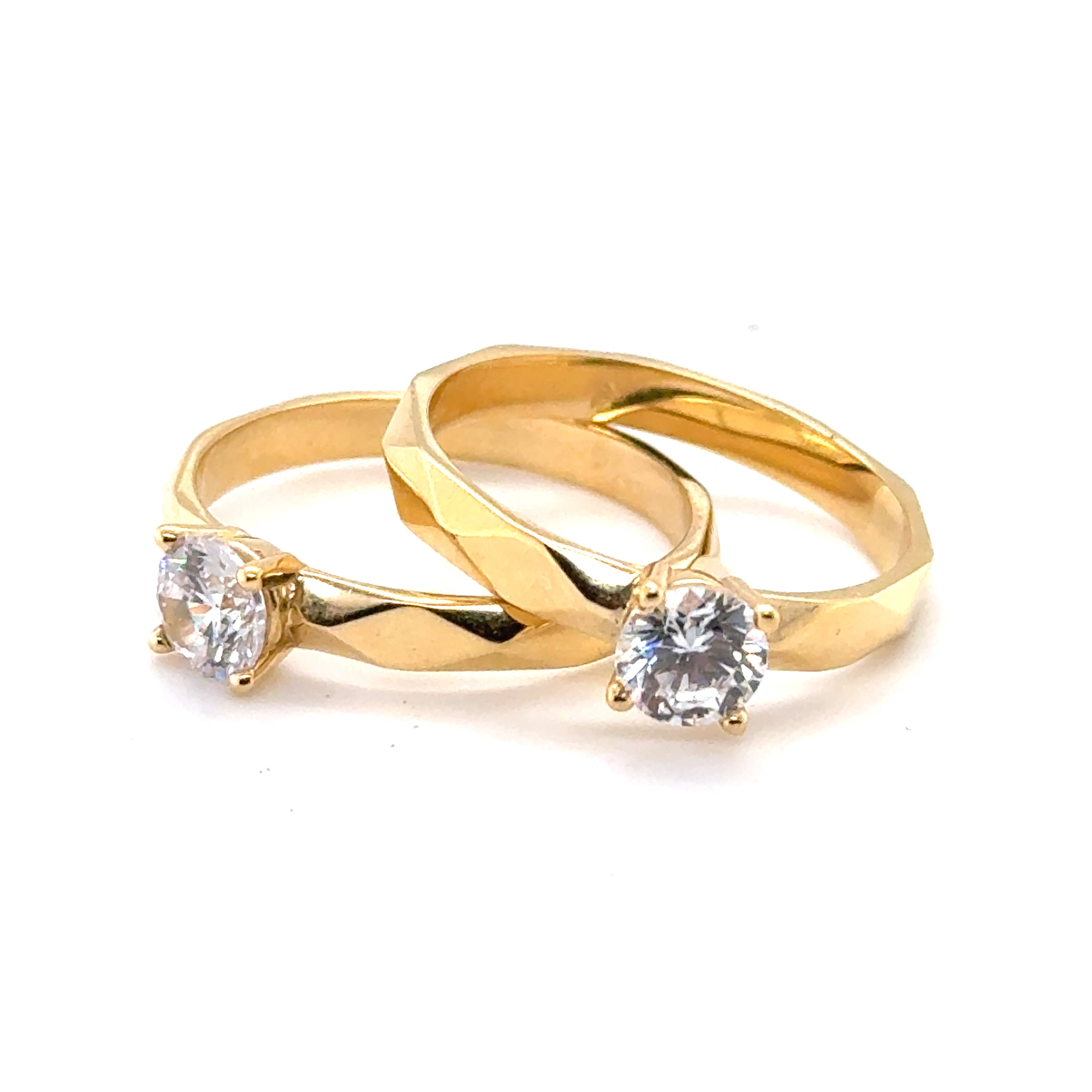 Пръстен от “Jacklin hugasian” в жълто злато с циркони.