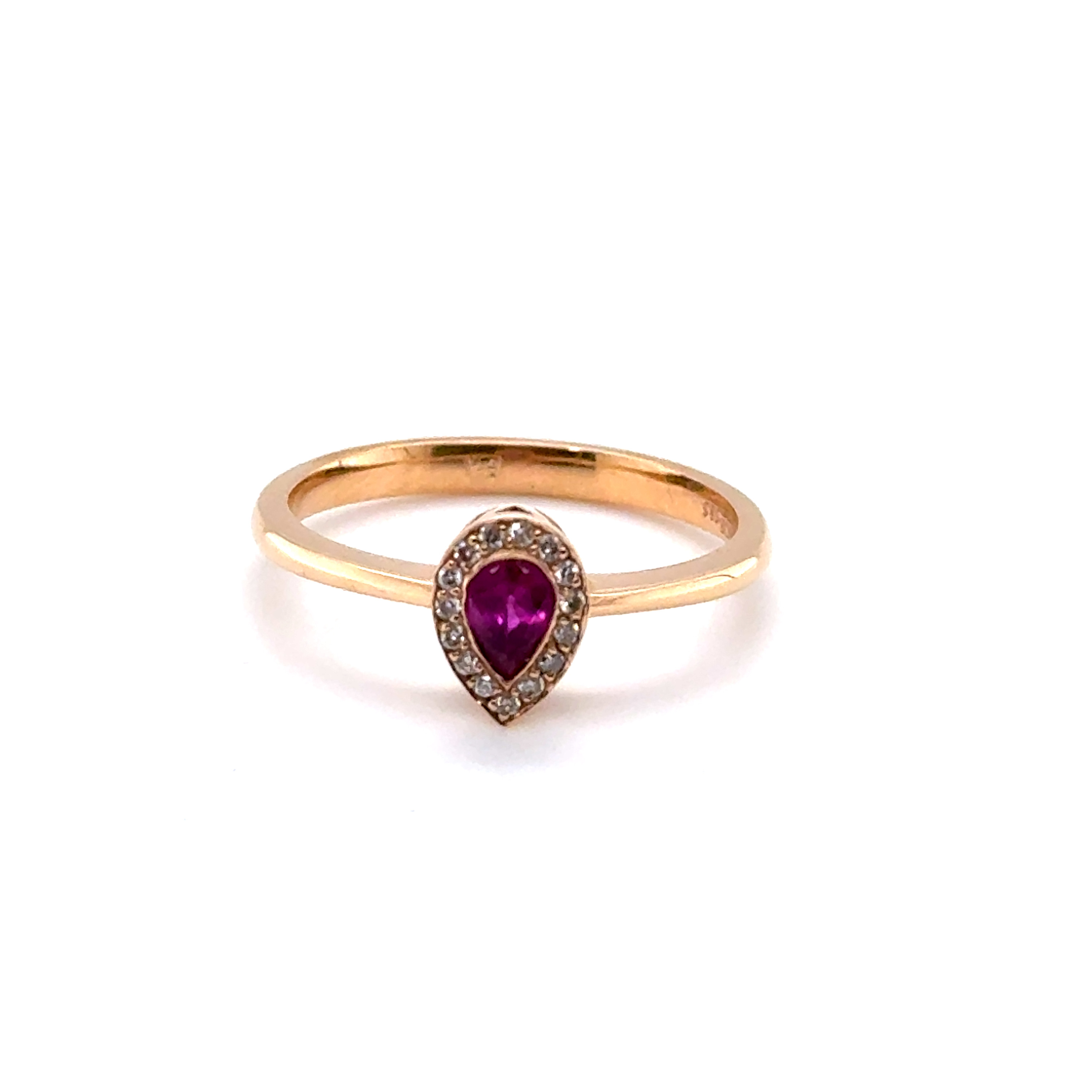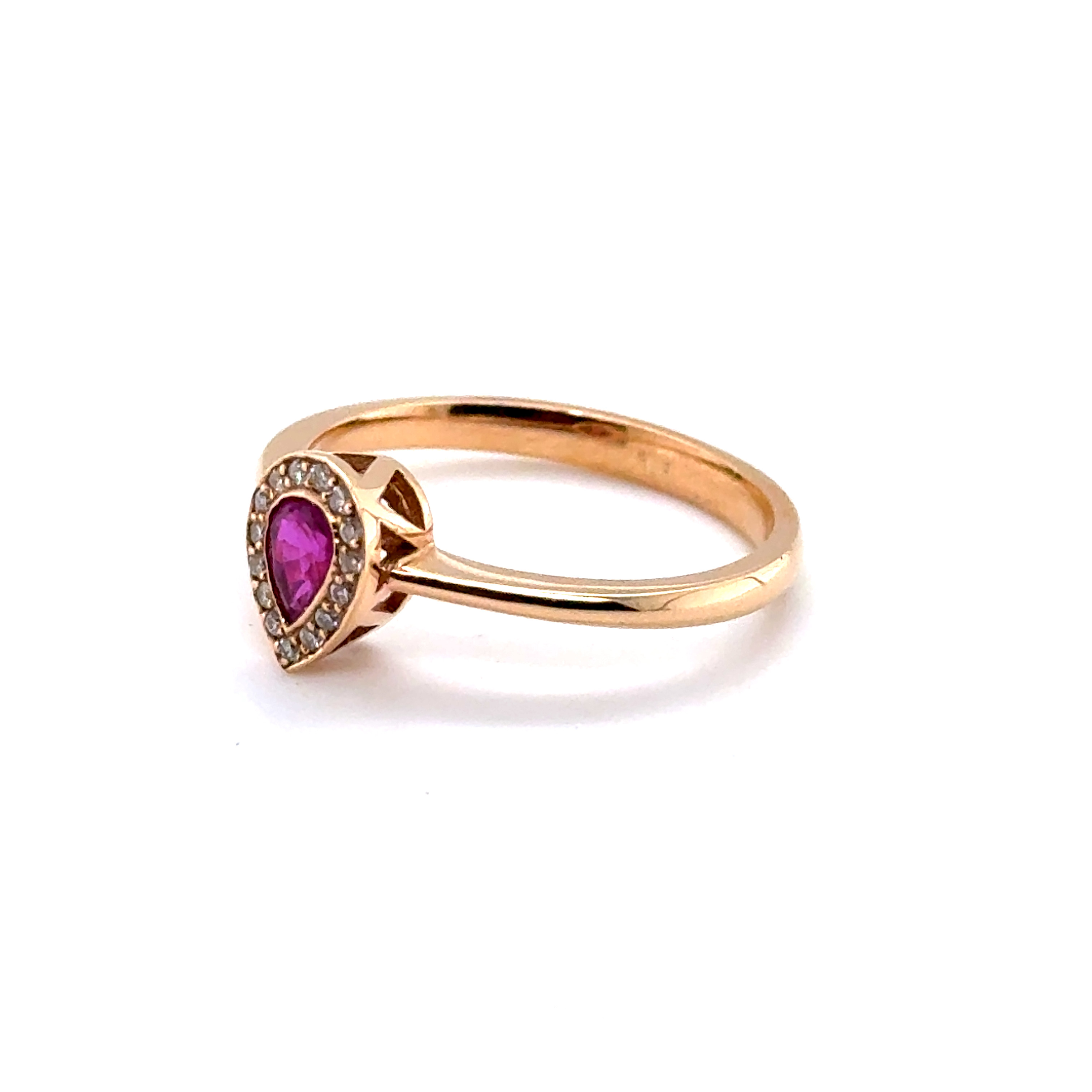 Пръстен от "Jacklin hugasian" в розово злато с рубин и диаманти.