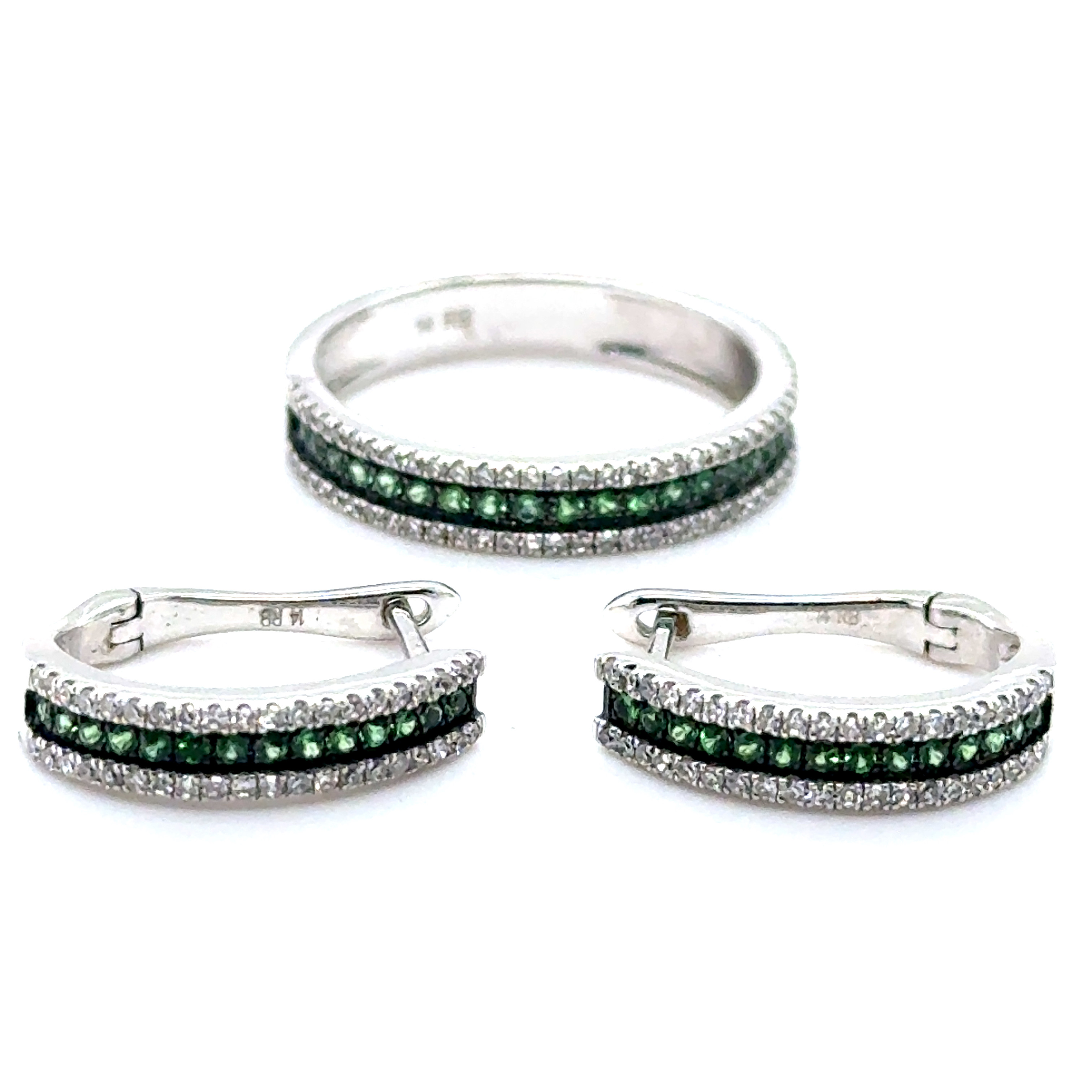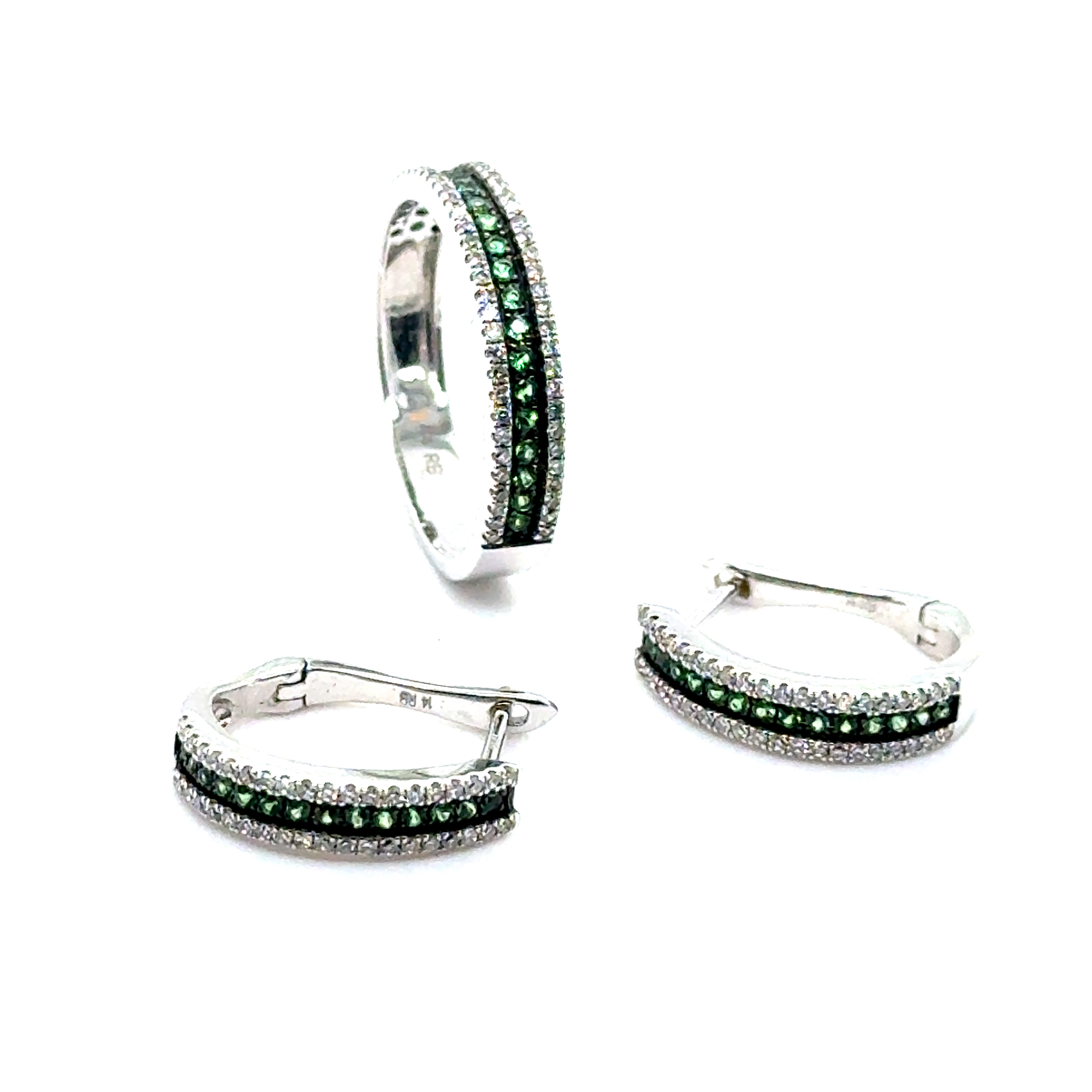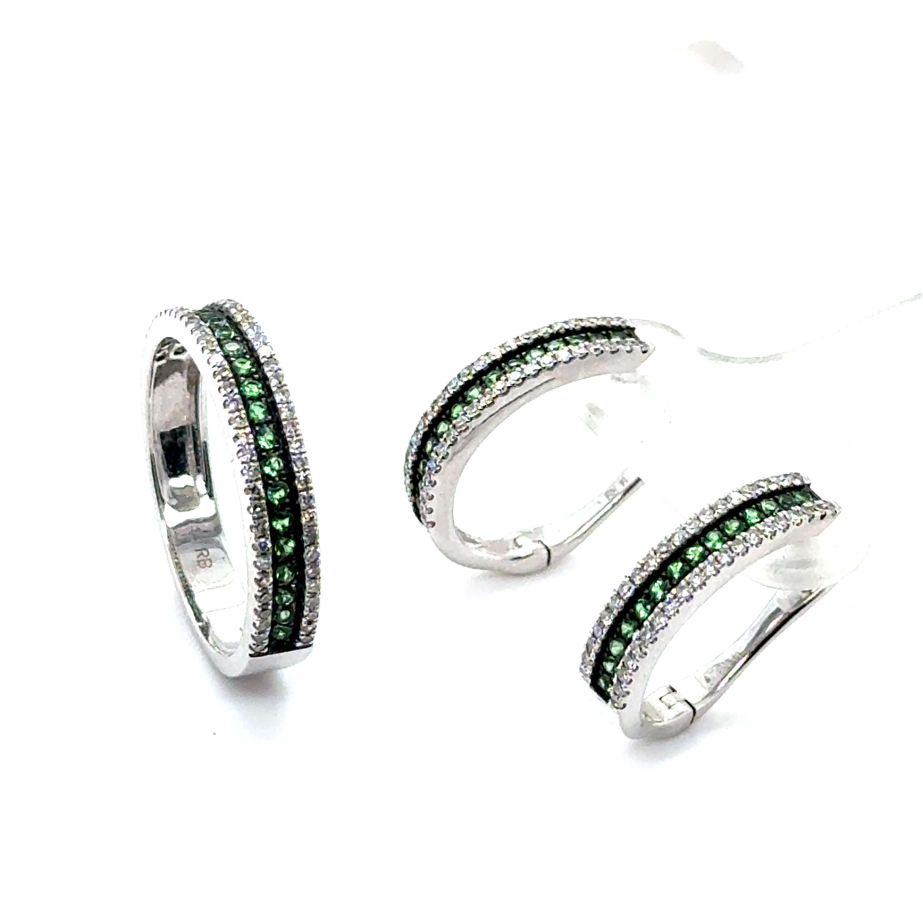 Комплект от "Jacklin hugasian" в бяло злато с естествен изумруд и диаманти.