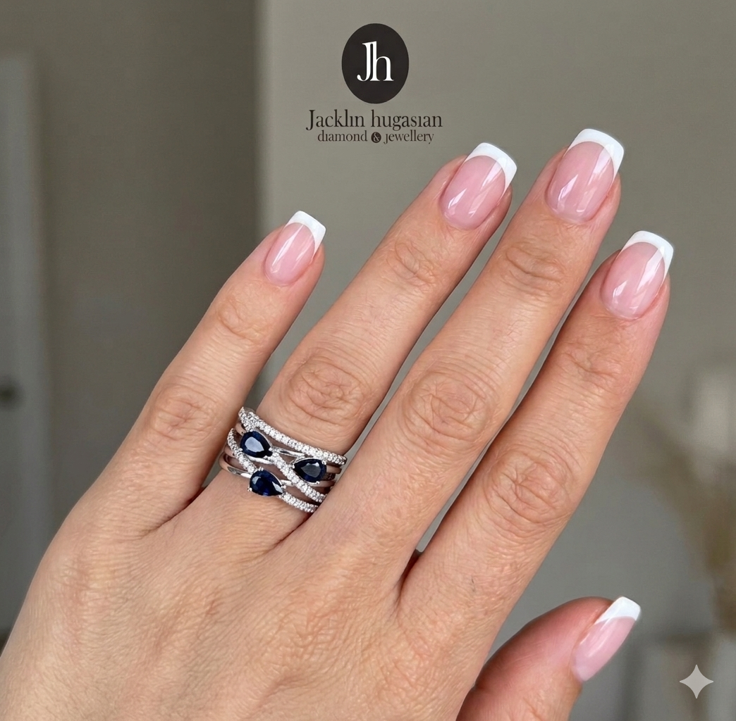 Пръстен от "Jacklin hugasian" в бяло злато със сапфир и диаманти.