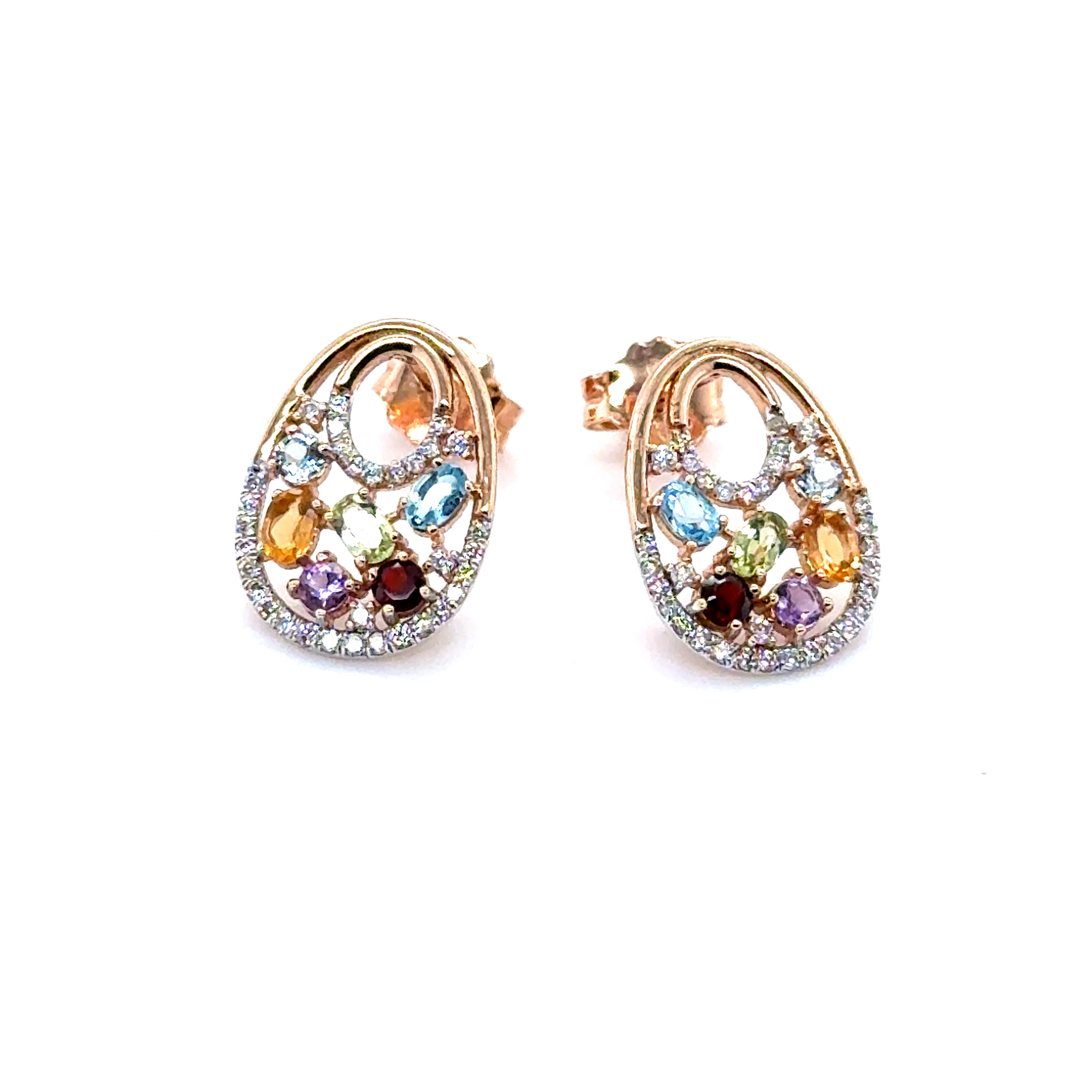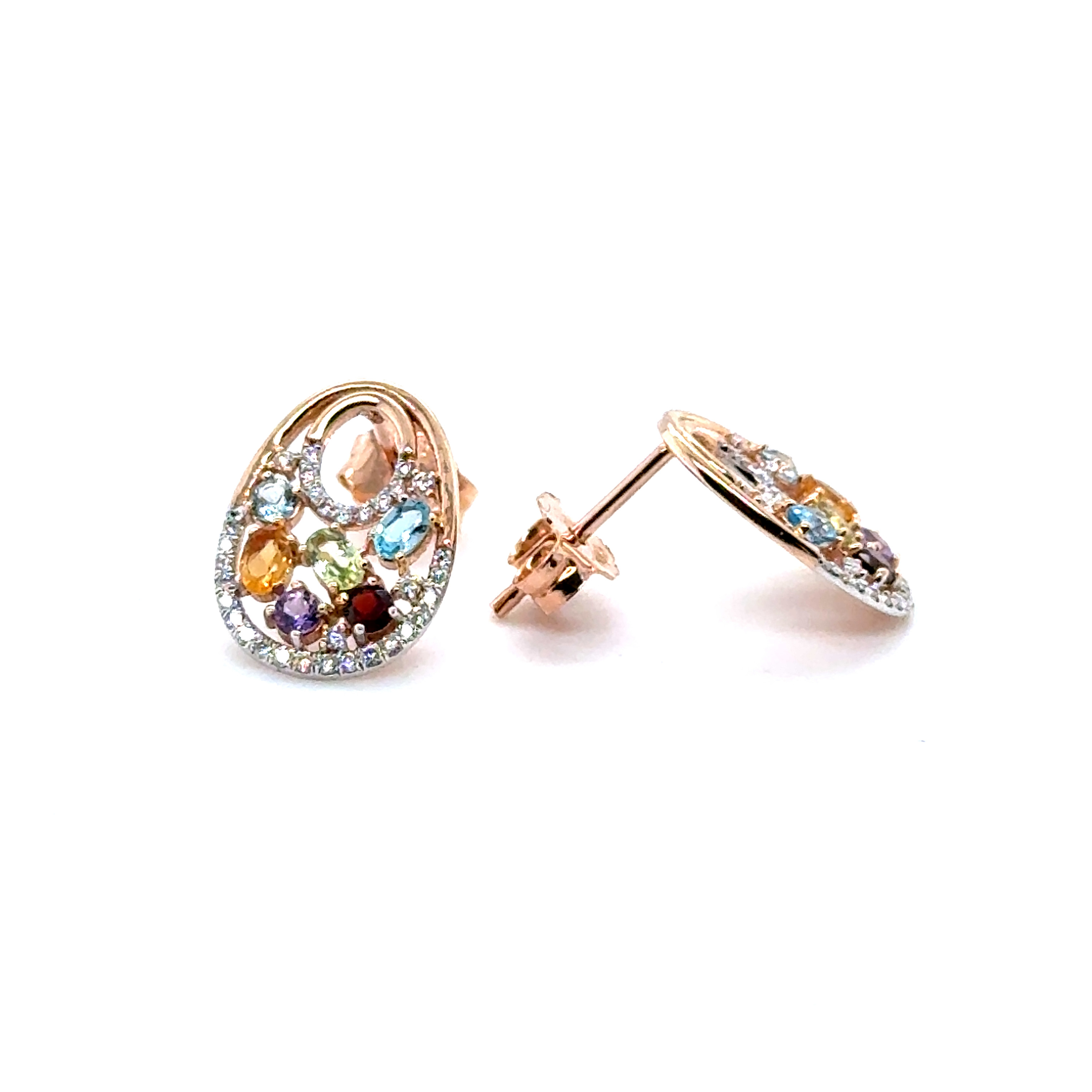 Комплект колие и обеци от "Jacklin hugasian" в розово злато с диаманти и естествени аметист, рубин, турмалин,топаз.