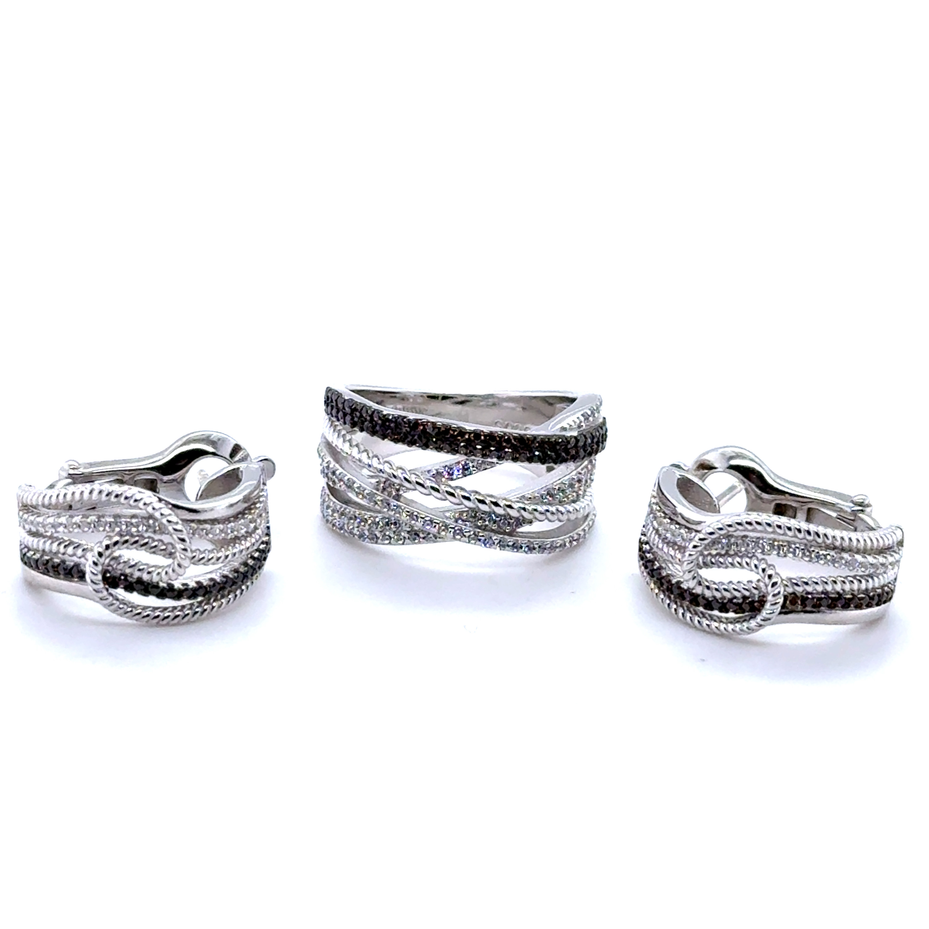 Комплект, обеци и пръстен от “Jacklin hugasian” в сребро с топаз и циркони