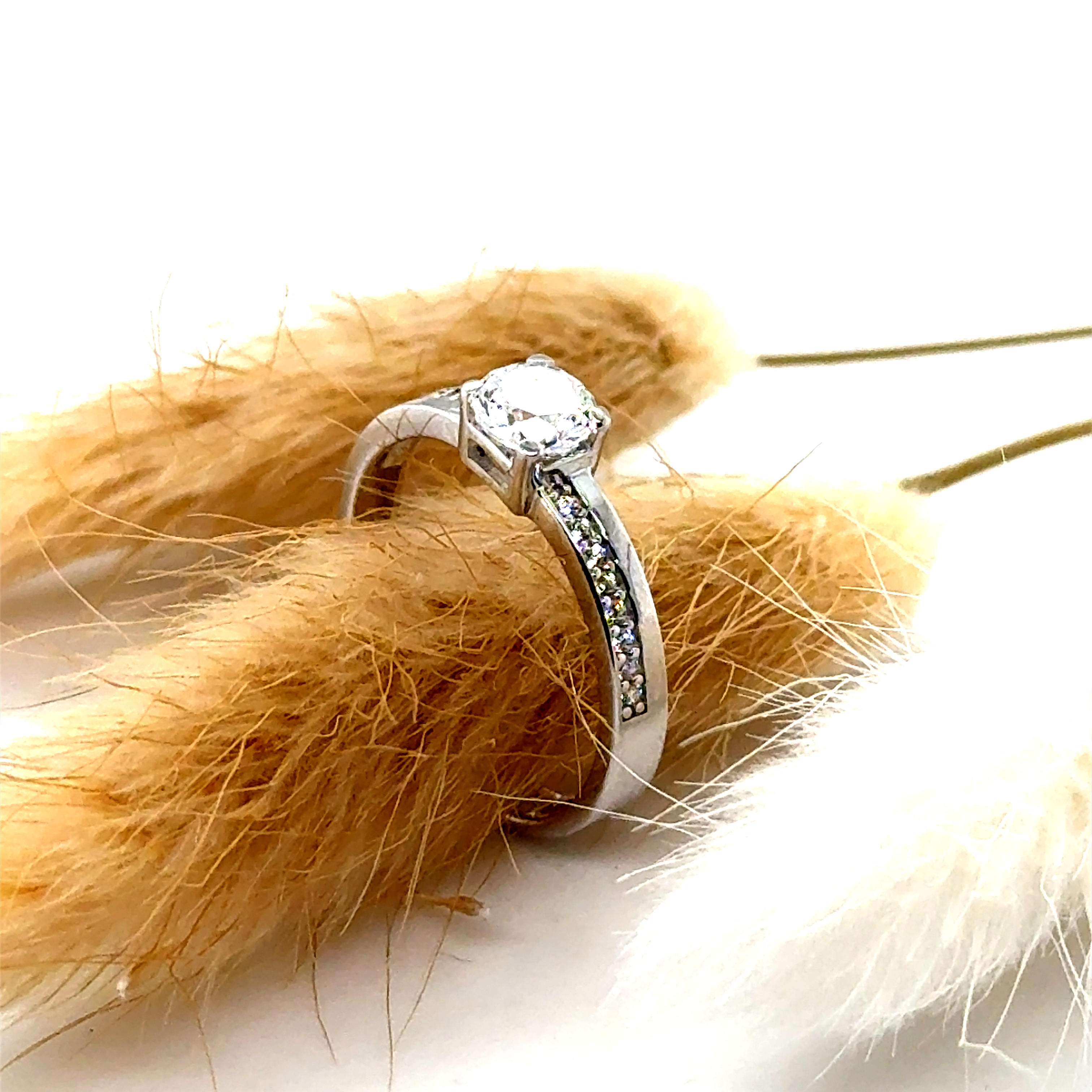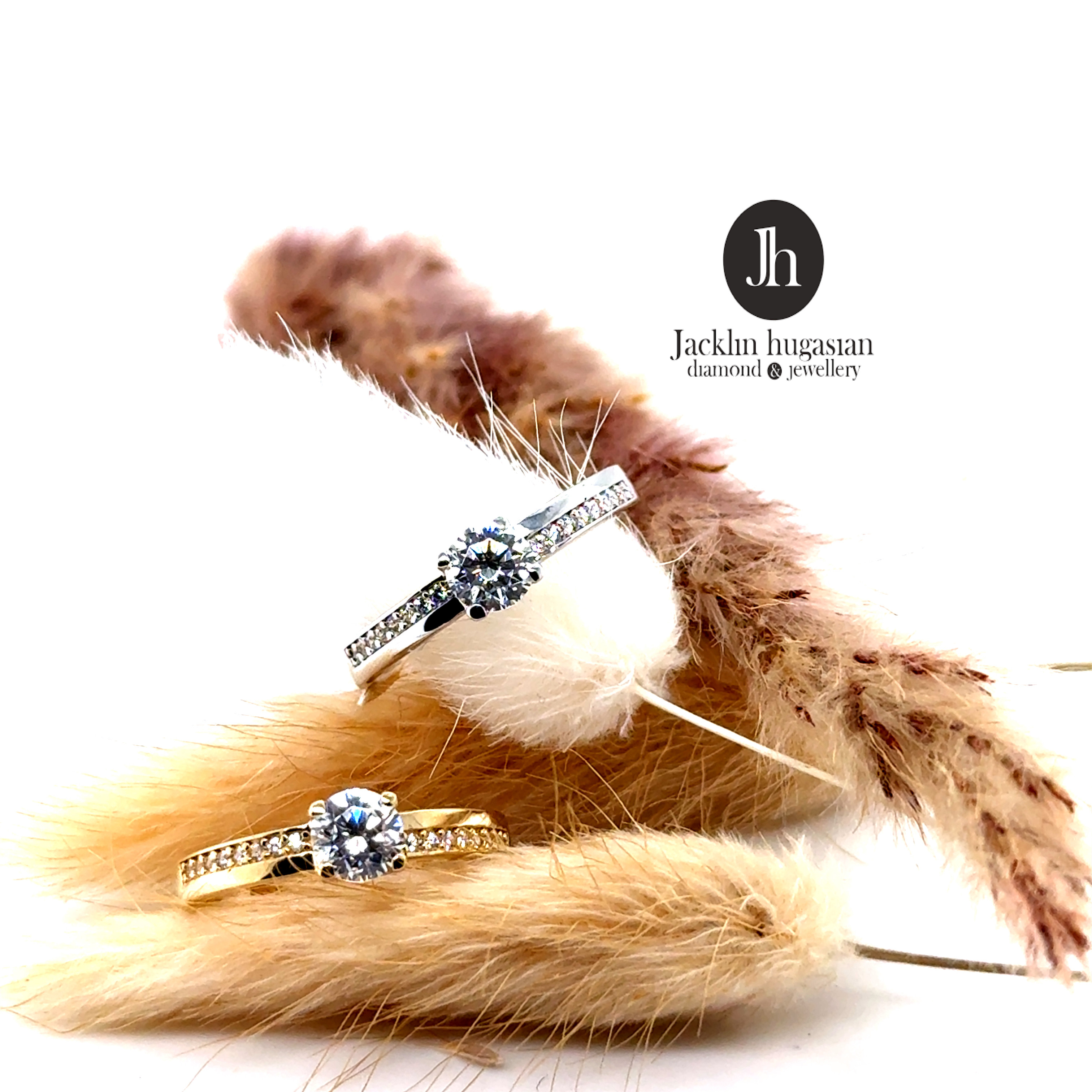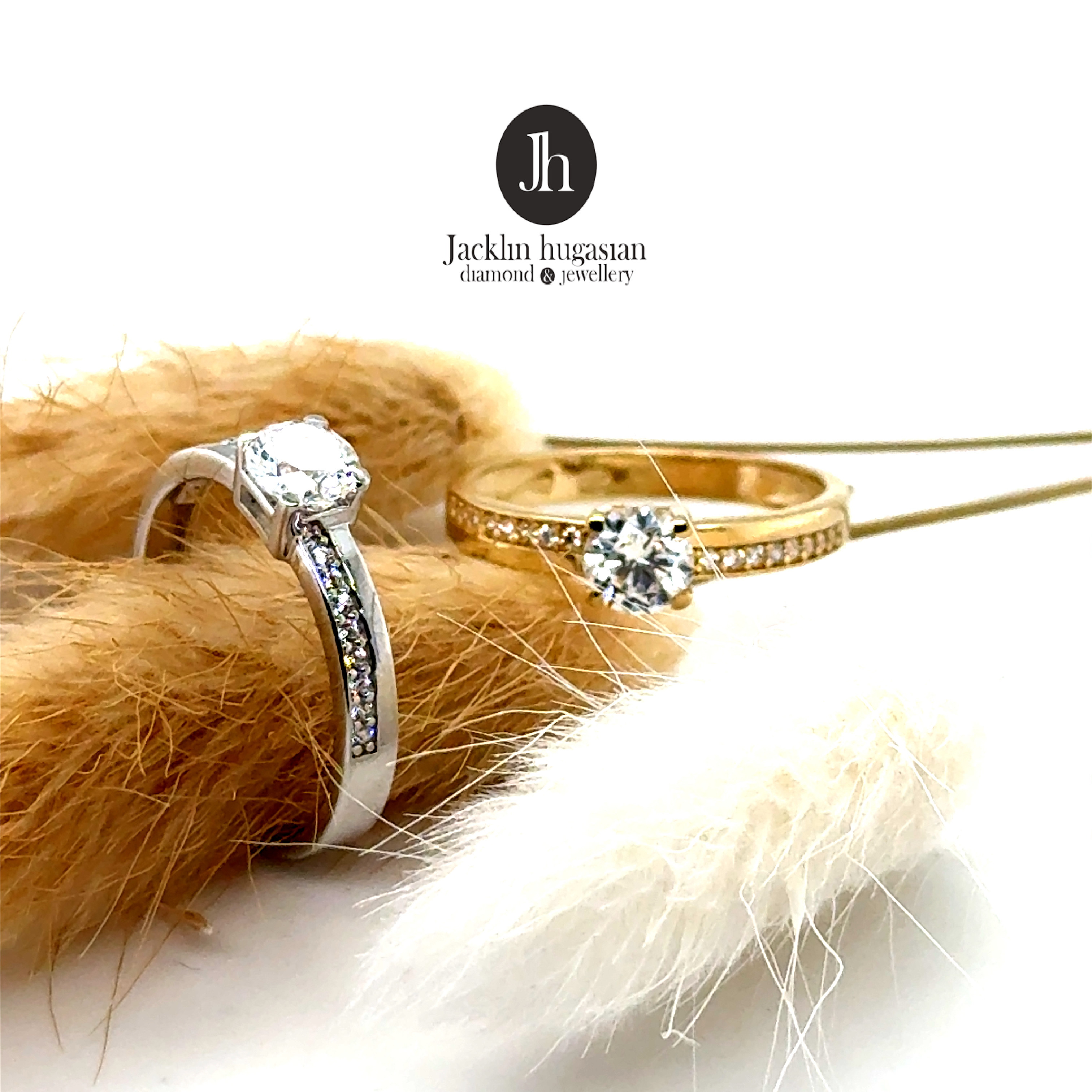 Пръстен от “Jacklin hugasian” в жълто и в бяло злато с циркони.